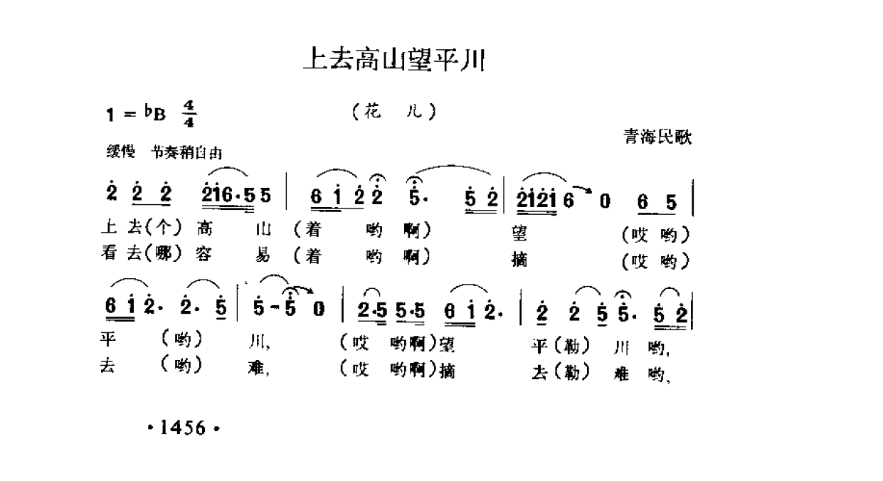 上去高山望平川(花儿)青海民歌简谱歌词是曲谱查询网于2025年01月16日 10:09:09更新在民歌曲谱频道中的内容,收录在民歌曲谱栏目中;曲谱查询网分享的上去高山望平川(花儿)青海民歌简谱五线谱高清图片,欢迎在线免费下载;曲谱查询网无需注册,即可直接下载海量歌曲谱与乐器学习相关资料。
