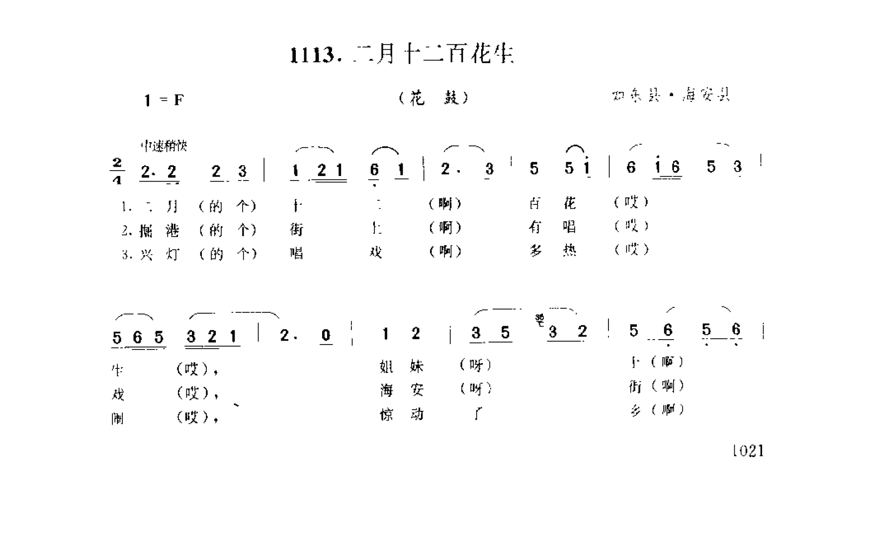 歌舞小调:二月十二百花生(花鼓) 如东县·海安县