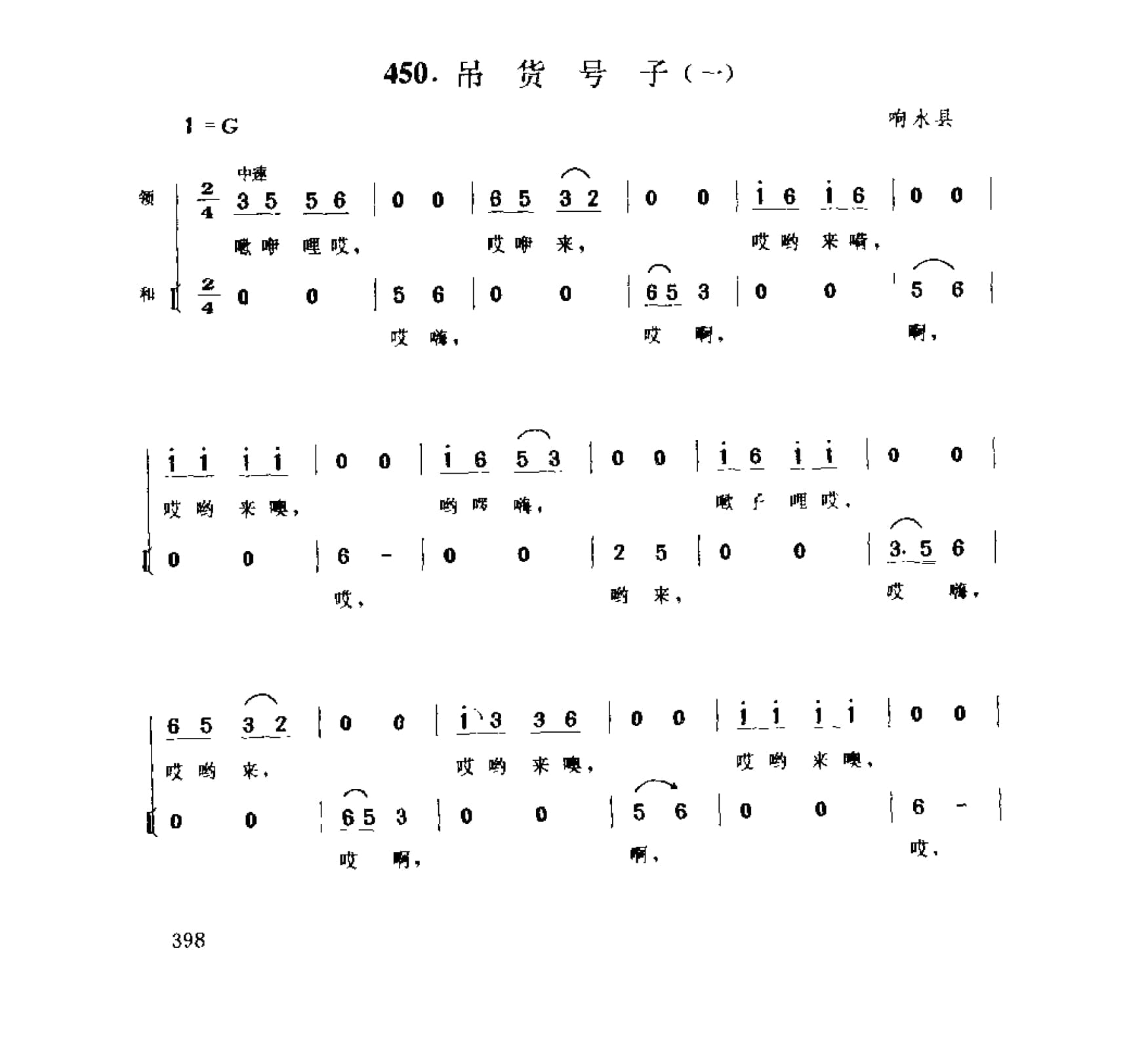 名称:渔民船工号子_吊货号子 一 响水县国家:中国分类:歌谱子类:民歌谱类型:简谱/五线谱文件格式:jpg