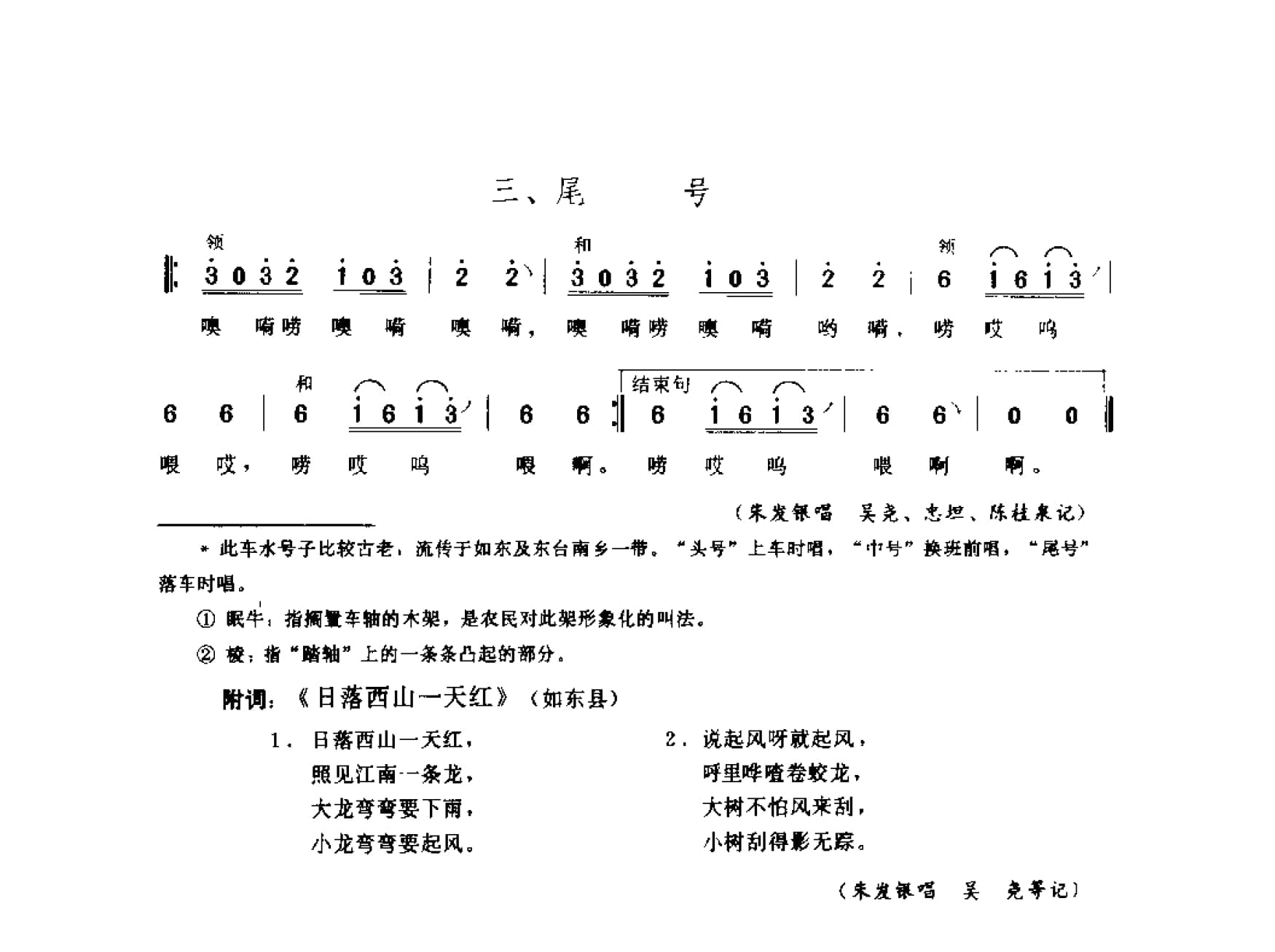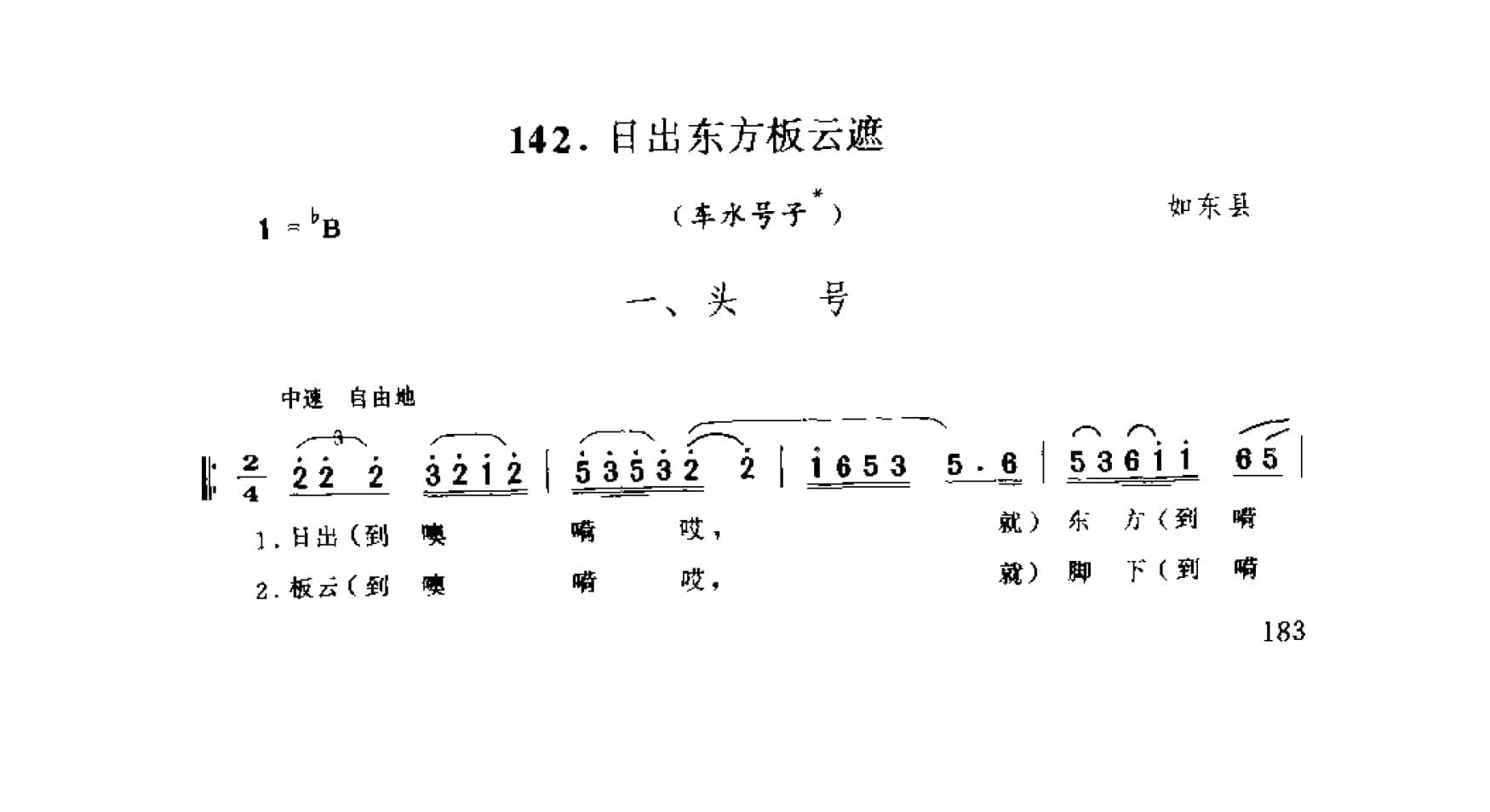 名称:日出东方板云遮 车水号子 如东县国家:中国分类:歌谱子类:民歌谱类型:简谱/五线谱文件格式:jpg