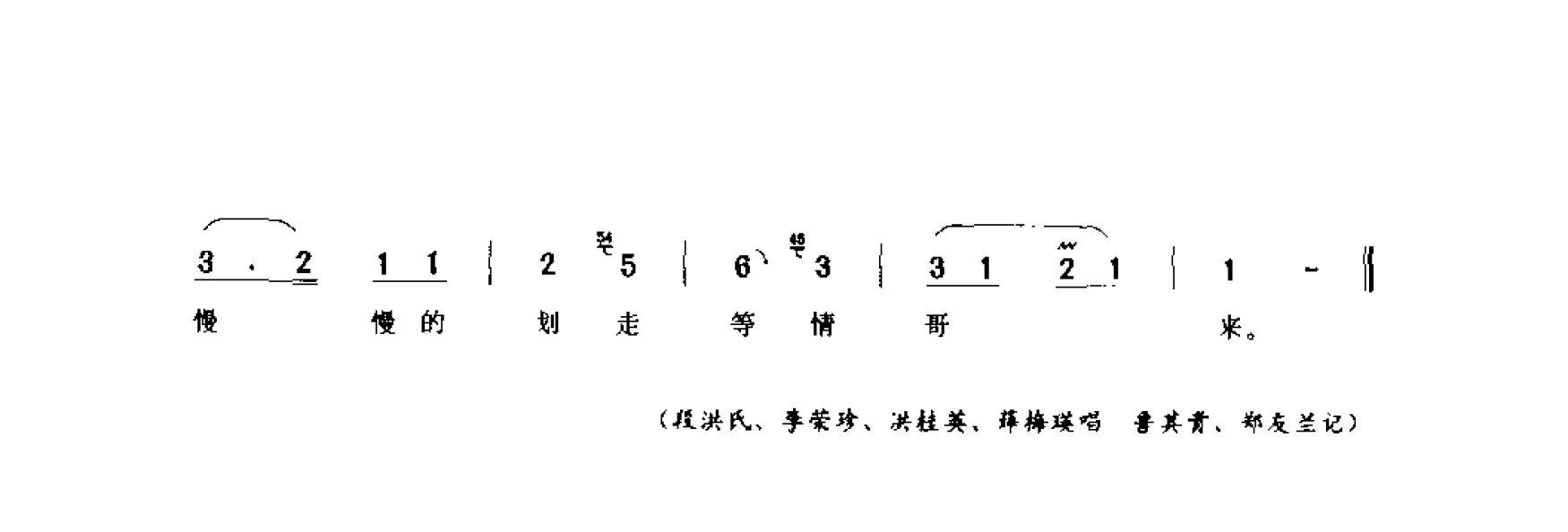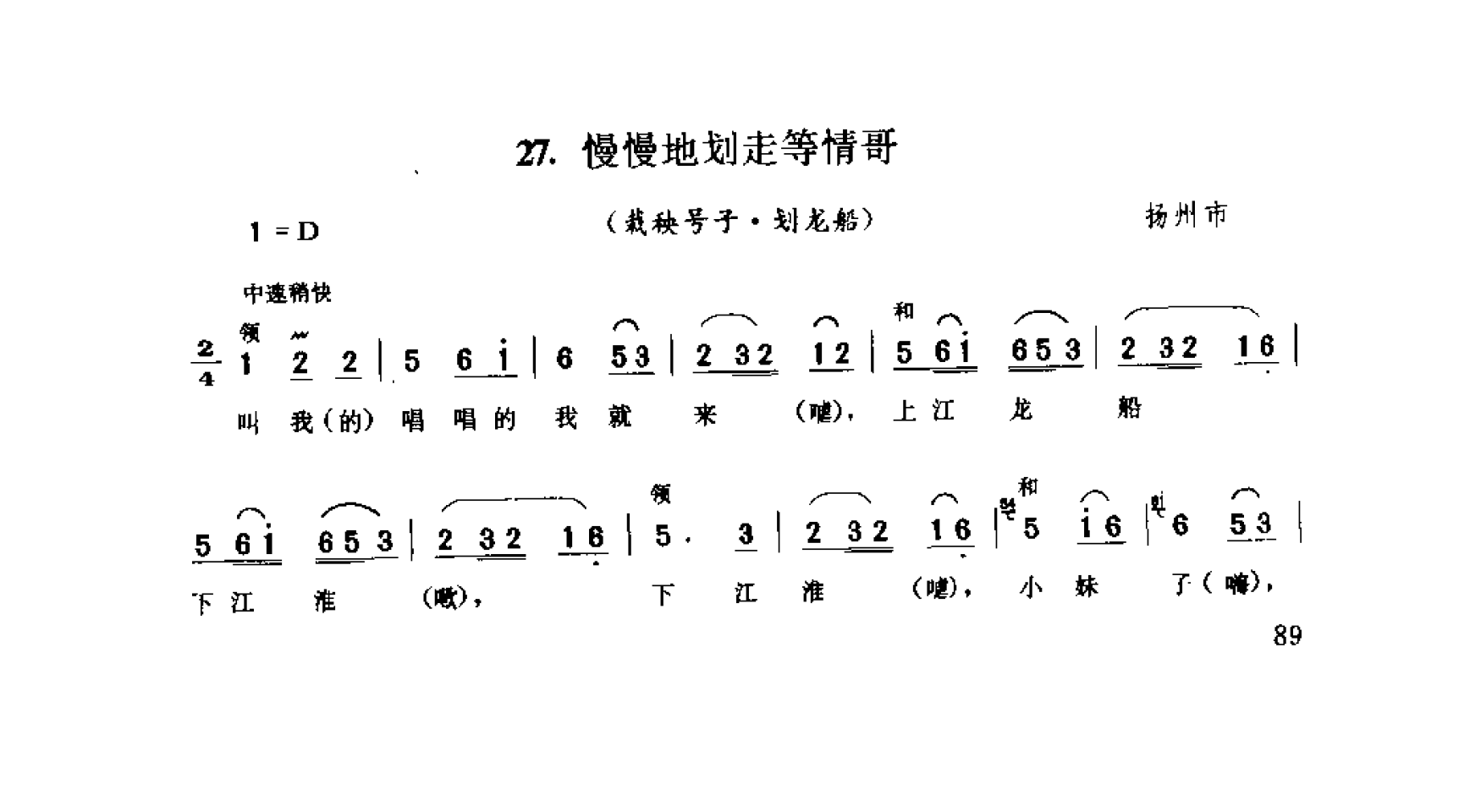 慢慢地划走等情哥(栽秧号子·划龙船) 扬州市简谱歌词是曲谱查询网于2024年12月18日 22:05:45更新在民歌曲谱频道中的内容,收录在民歌曲谱栏目中;曲谱查询网分享的慢慢地划走等情哥(栽秧号子·划龙船) 扬州市简谱五线谱高清图片,欢迎在线免费下载;曲谱查询网无需注册,即可直接下载海量歌曲谱与乐器学习相关资料。