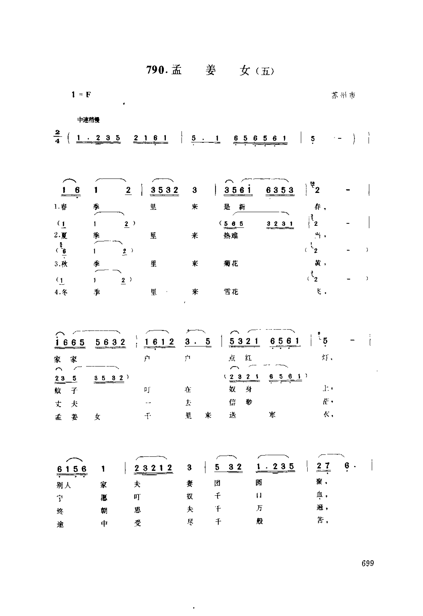 小调:孟姜女(五) 苏州市简谱歌词是曲谱查询网于2024年12月23日 19:27:33更新在民歌曲谱频道中的内容,收录在民歌曲谱栏目中;曲谱查询网分享的小调:孟姜女(五) 苏州市简谱五线谱高清图片,欢迎在线免费下载;曲谱查询网无需注册,即可直接下载海量歌曲谱与乐器学习相关资料。