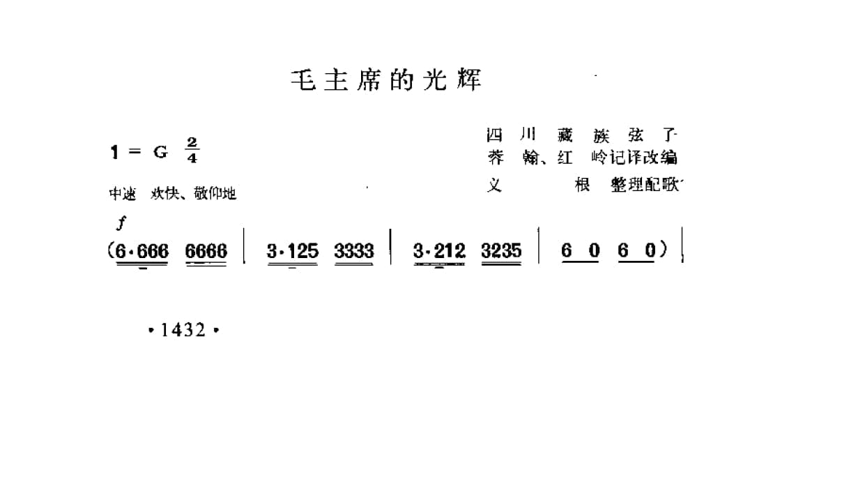 名称:毛主席的光辉 四川藏族弦子 蓉翰 红岭记译改端 义根整理配歌
