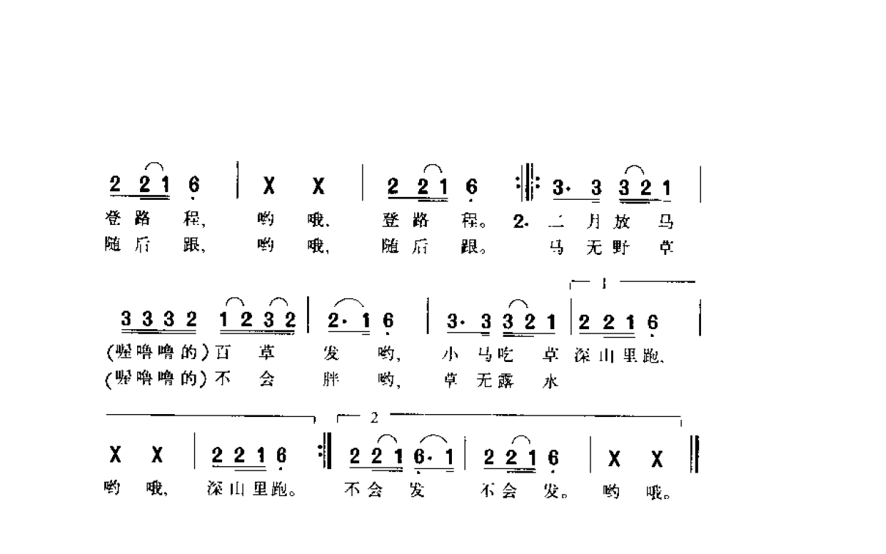 放马山歌 云南民歌简谱歌词是曲谱查询网于2025年01月15日 20:57:38更新在民歌曲谱频道中的内容,收录在民歌曲谱栏目中;曲谱查询网分享的放马山歌 云南民歌简谱五线谱高清图片,欢迎在线免费下载;曲谱查询网无需注册,即可直接下载海量歌曲谱与乐器学习相关资料。