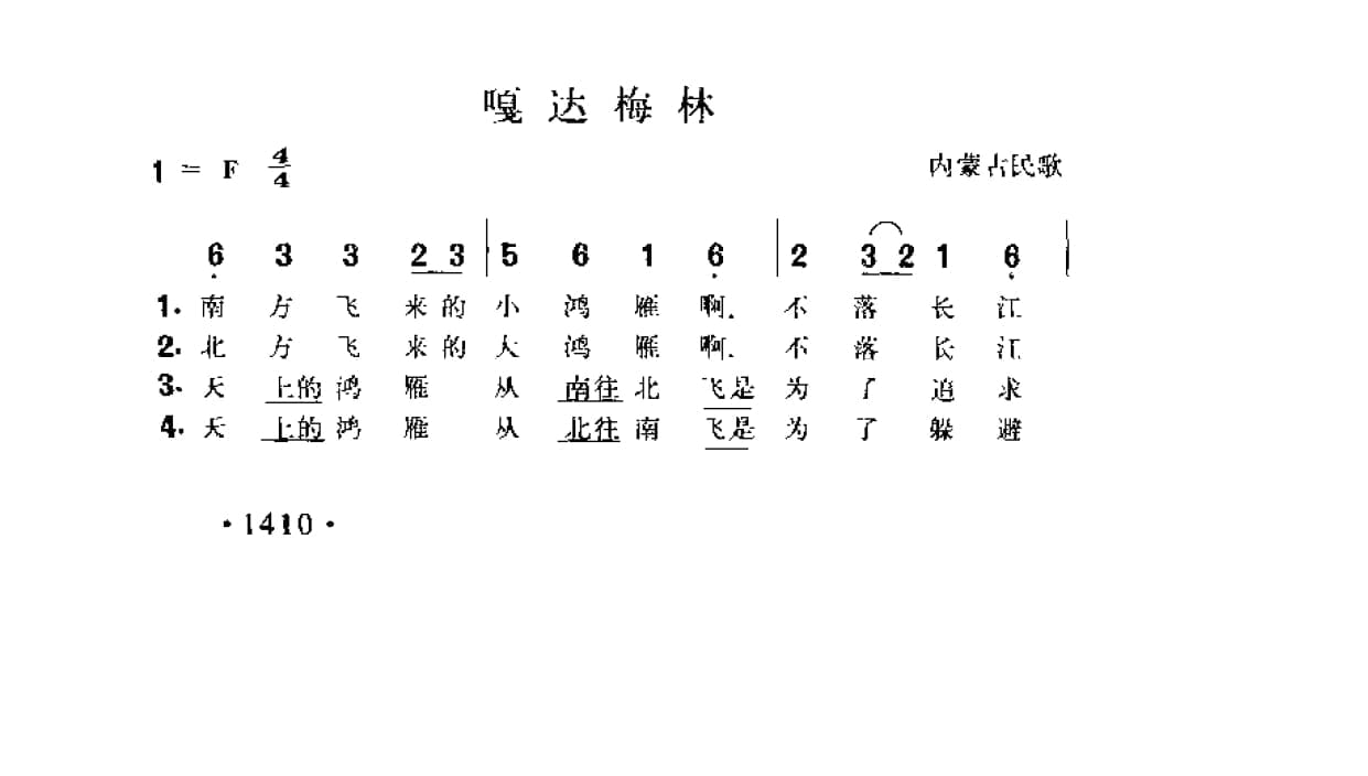 名称:嘎达梅林 内蒙古民歌国家:蒙古分类:歌谱子类:民歌谱类型:简谱/五线谱文件格式:jpg