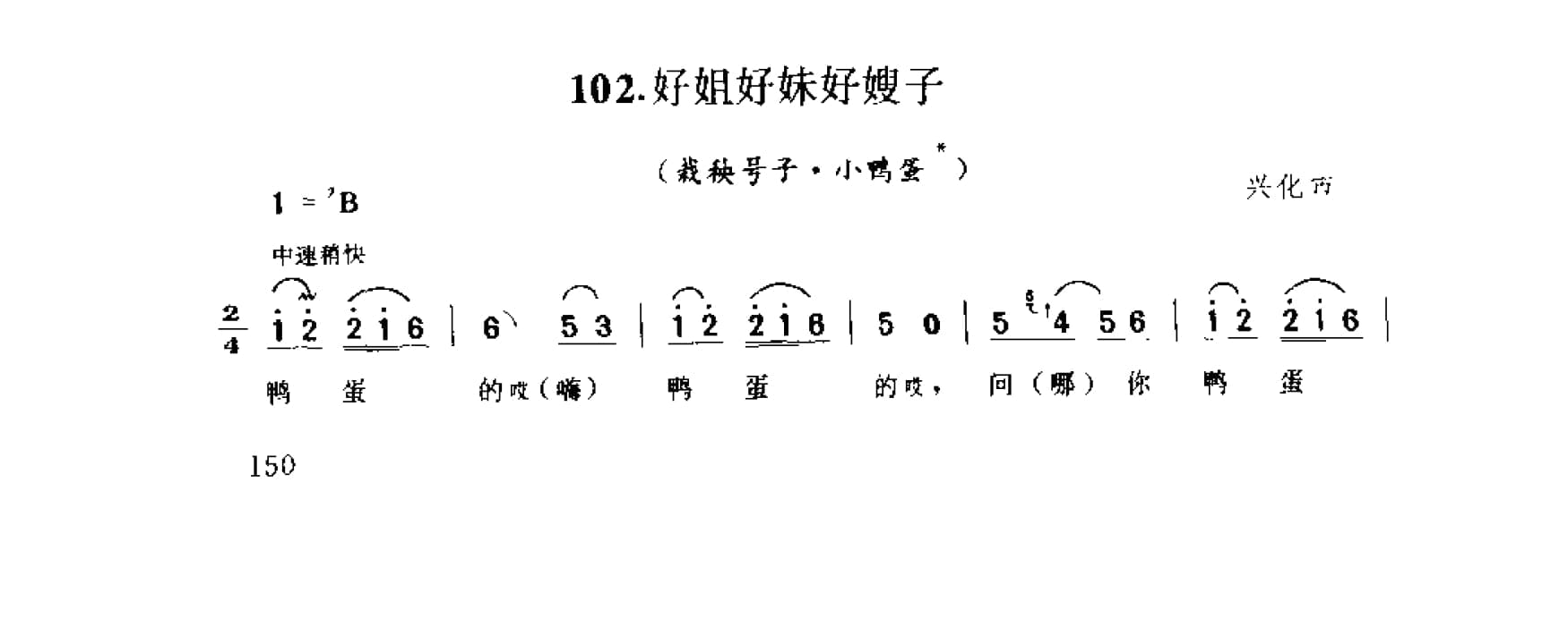 名称:好姐好妹好嫂子 栽秧号子 小鸭蛋 兴化市国家:中国分类:歌谱子类:民歌谱类型:简谱/五线谱文件格式:jpg