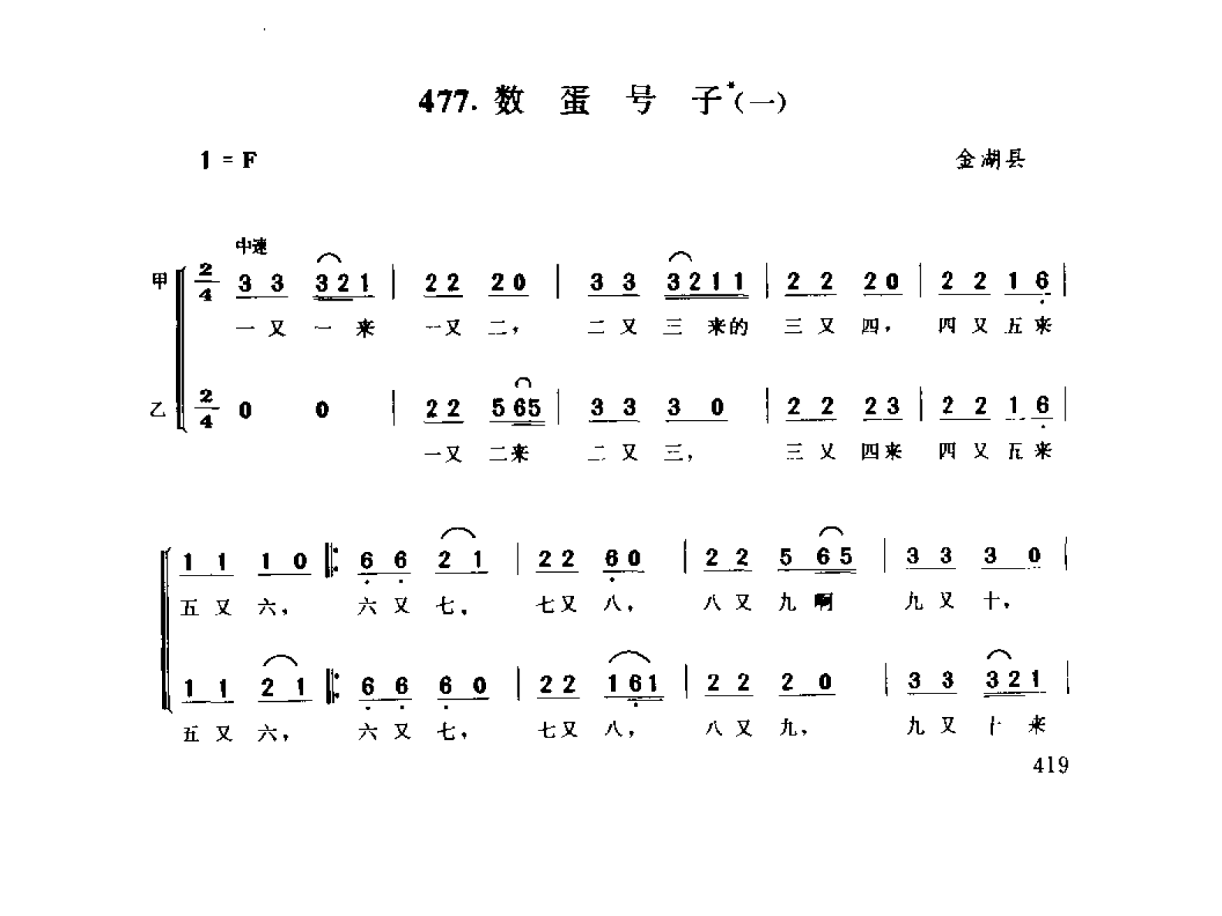 劳动号子:数蛋号子(一) 金湖县简谱歌词是曲谱查询网于2024年12月22日 10:55:04更新在民歌曲谱频道中的内容,收录在民歌曲谱栏目中;曲谱查询网分享的劳动号子:数蛋号子(一) 金湖县简谱五线谱高清图片,欢迎在线免费下载;曲谱查询网无需注册,即可直接下载海量歌曲谱与乐器学习相关资料。