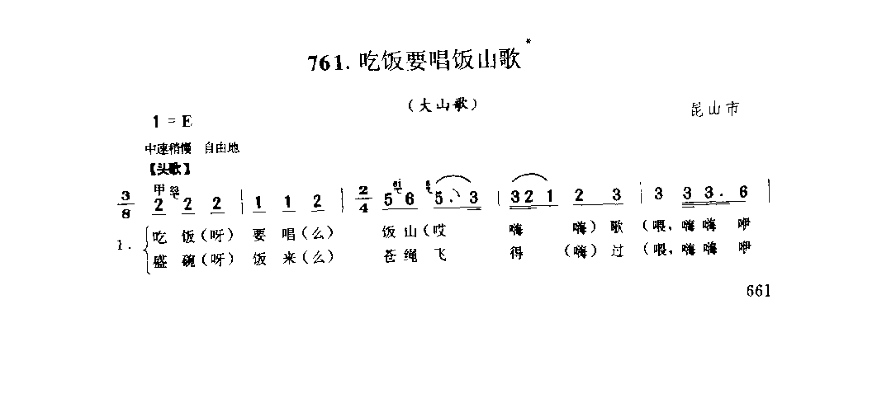 山歌:吃饭要唱饭山歌(大山歌) 昆山市简谱歌词是曲谱查询网于2024年12月23日 16:09:16更新在民歌曲谱频道中的内容,收录在民歌曲谱栏目中;曲谱查询网分享的山歌:吃饭要唱饭山歌(大山歌) 昆山市简谱五线谱高清图片,欢迎在线免费下载;曲谱查询网无需注册,即可直接下载海量歌曲谱与乐器学习相关资料。