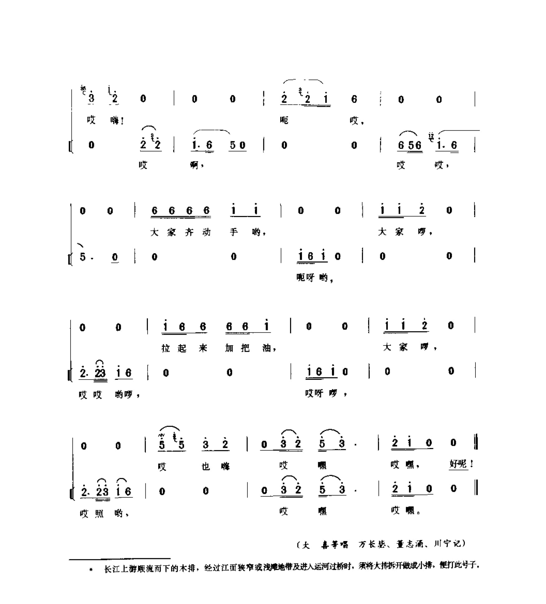 名称:搬运号子_排筏号子 一 拆做排号子 南京市国家:中国分类:歌谱子类:民歌谱类型:简谱/五线谱文件格式:jpg