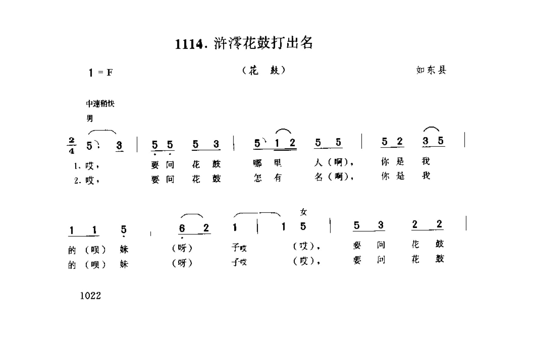 名称:歌舞小调_浒澪花鼓打出名 花鼓 如东县国家:中国分类:歌谱子类:民歌谱类型:简谱/五线谱文件格式:jpg