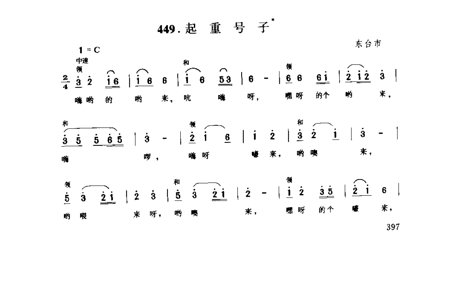 渔民船工号子:起重号子 东台市简谱歌词是曲谱查询网于2024年12月21日 22:04:27更新在民歌曲谱频道中的内容,收录在民歌曲谱栏目中;曲谱查询网分享的渔民船工号子:起重号子 东台市简谱五线谱高清图片,欢迎在线免费下载;曲谱查询网无需注册,即可直接下载海量歌曲谱与乐器学习相关资料。