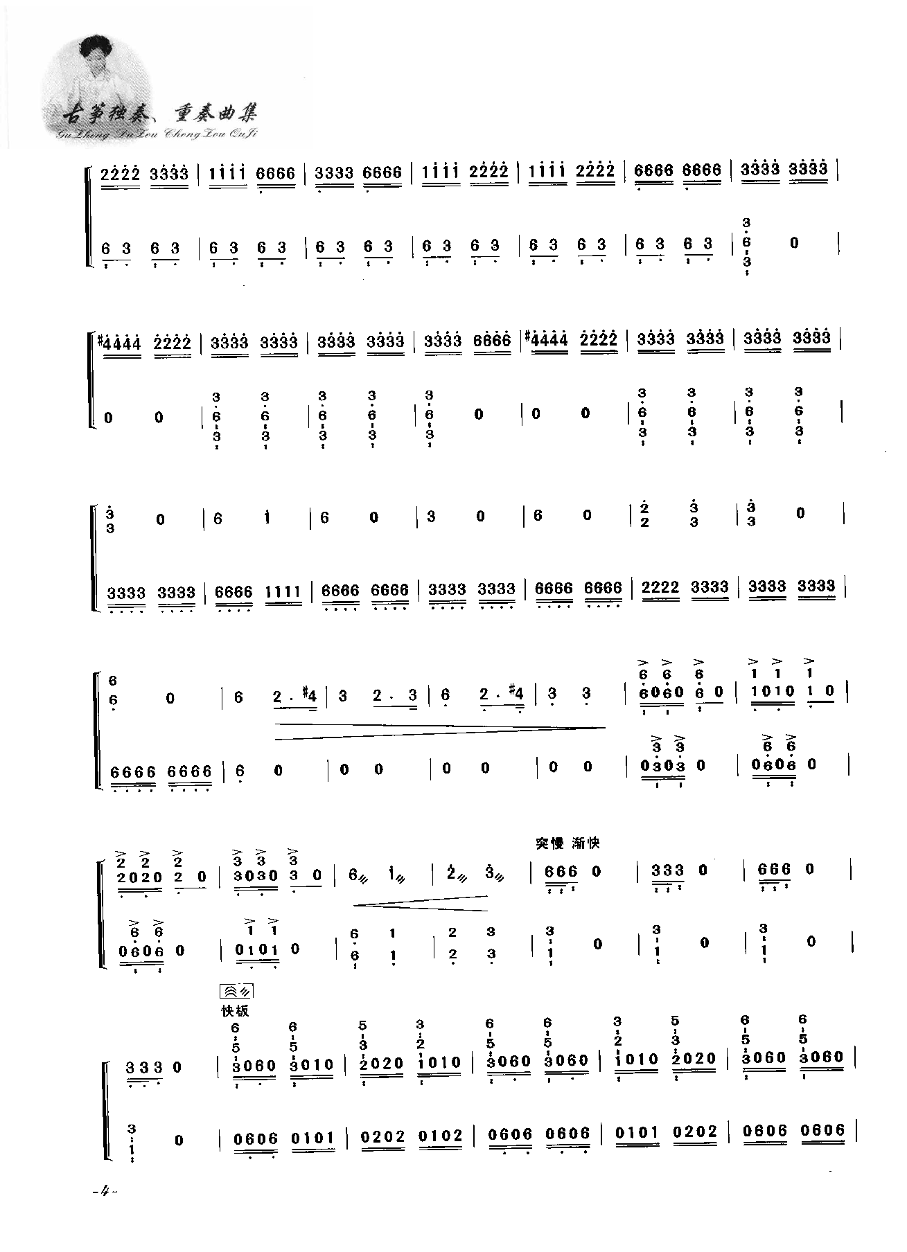 1680 古筝谱 古筝乐谱 童庐筝谱 40左手抹弦本文分享古筝古琴乐谱 古筝分指练习(四)(选调《飘荡》),来源 转自《古筝曲网》, 高雁改编 词/曲, 演奏/唱,小种子 编辑整理…...