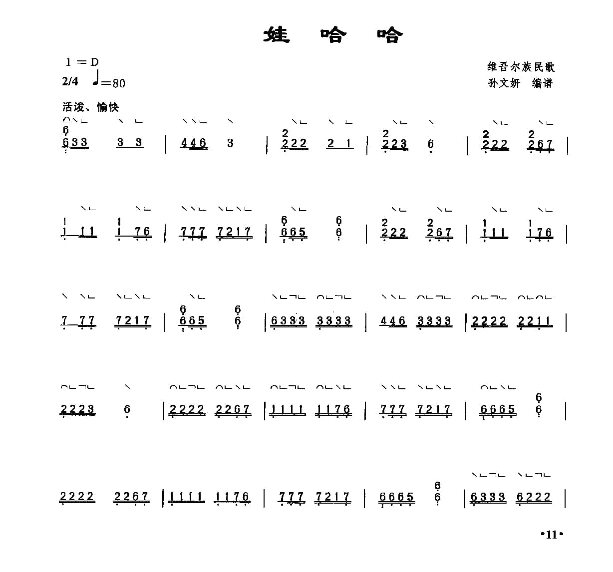 古筝考级乐曲简谱: 娃哈哈 维吾尔族民歌 孙文妍编谱(二级)