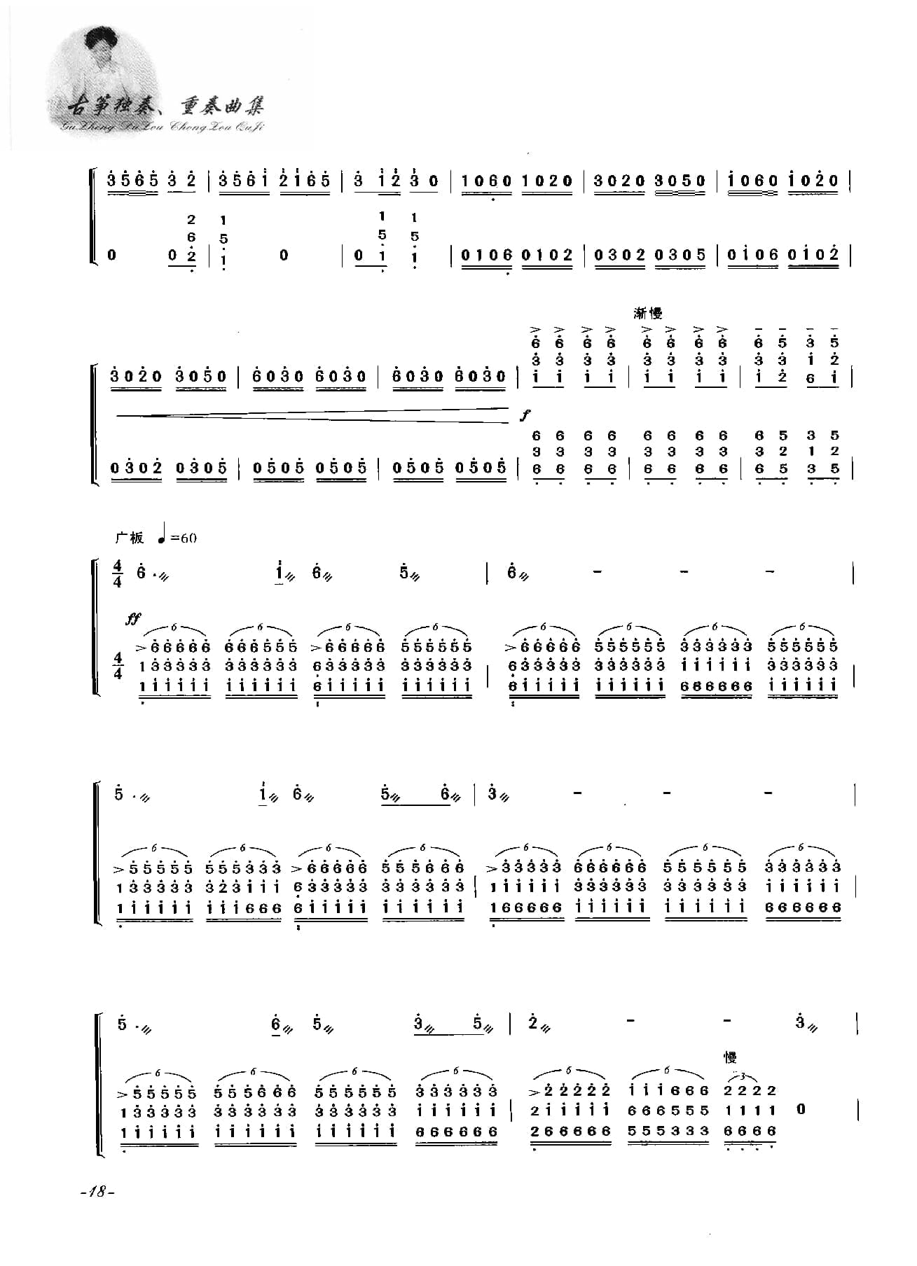 名称:古筝独奏简谱:春潮 筝独奏 朱晓谷 曲