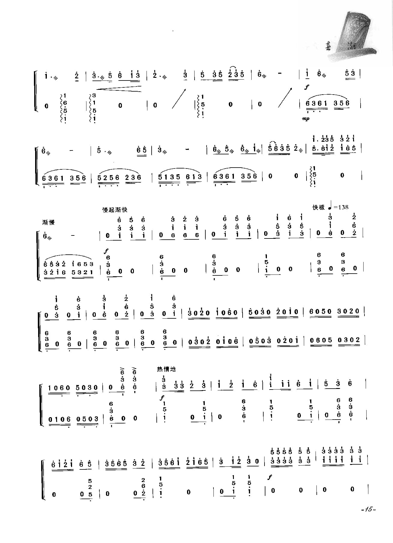 名称:古筝独奏简谱:春潮 筝独奏 朱晓谷 曲国家:中国分类:民族乐器谱子类:古筝谱类型:简谱文件格式:jpg