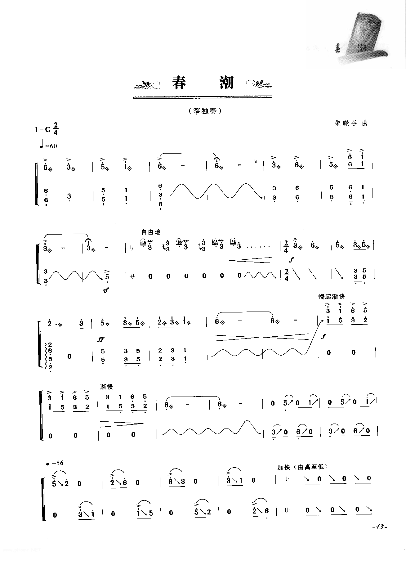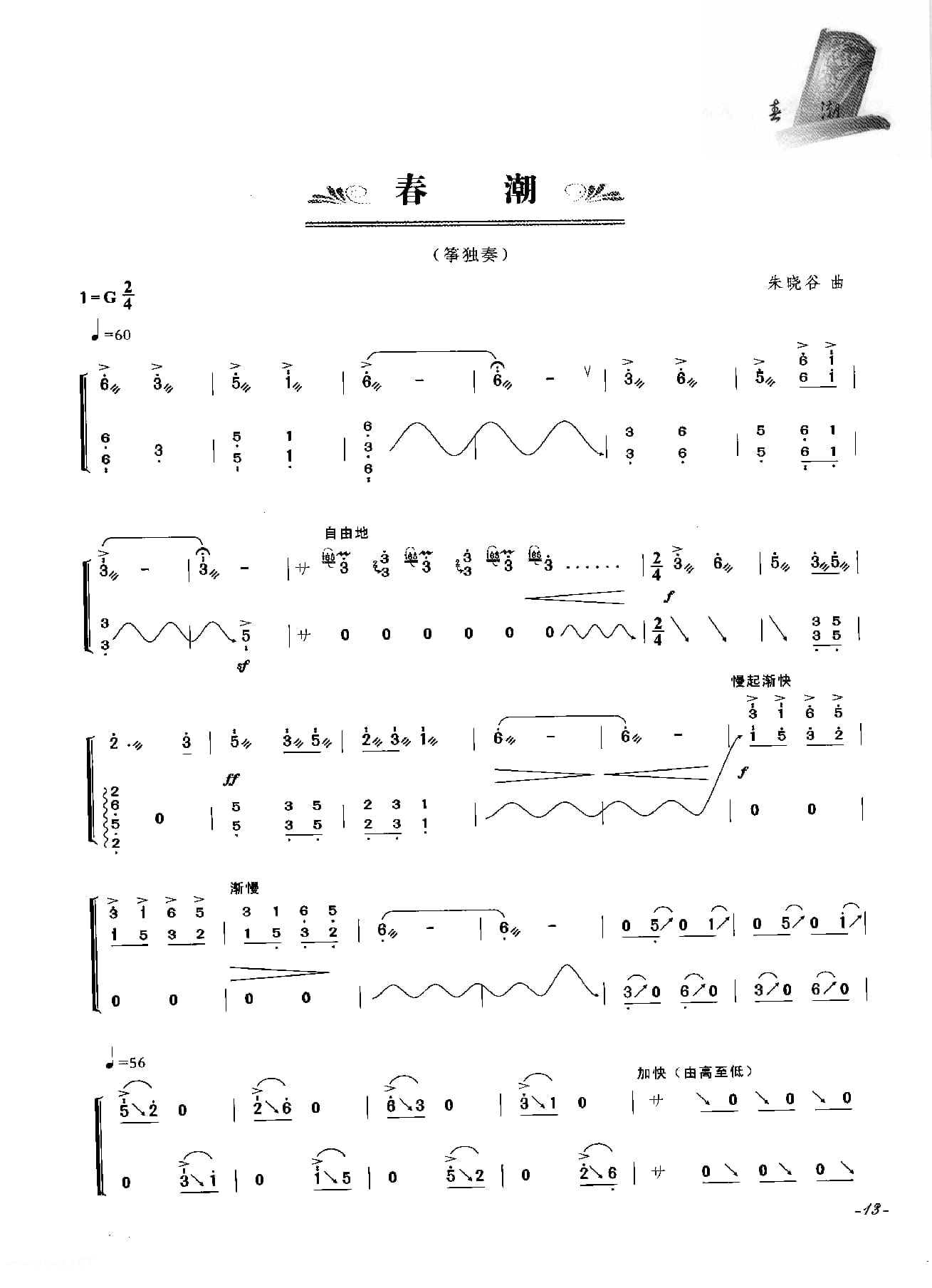古筝独奏简谱:春潮(筝独奏 )朱晓谷 曲