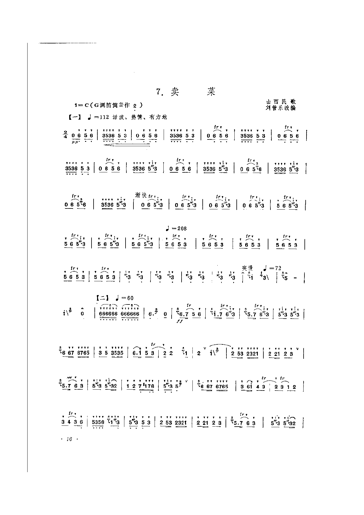 笛子独奏曲简谱:卖菜 山西民歌 刘管乐改编(附教学及赏析)