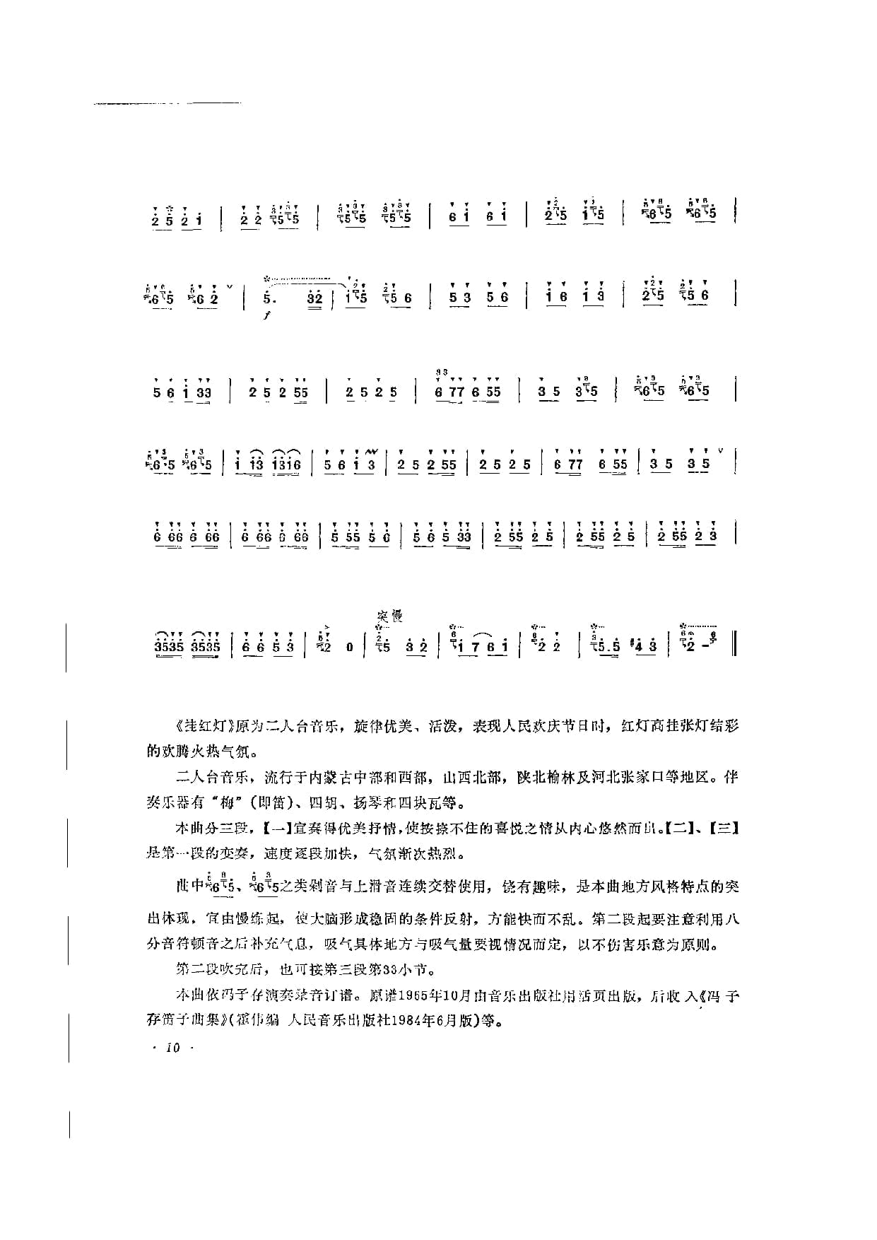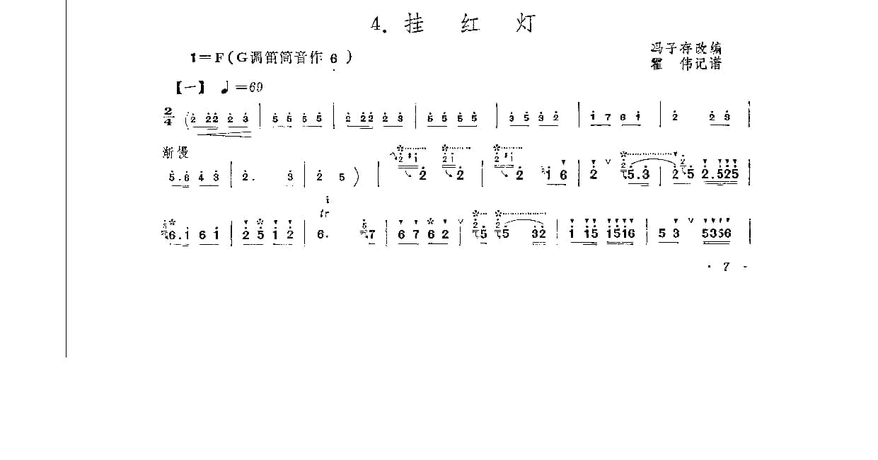 名称:笛子独奏曲简谱:挂红灯 冯子存改编 霍伟记谱 附教学及赏析