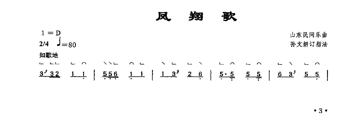 古筝考级乐曲简谱: 凤翔歌 山东民间乐曲 孙文妍订指法(一级)