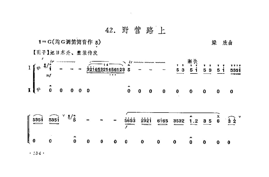名称:竹笛二重奏简谱:野营路上 梁欣曲国家:中国分类:民族乐器谱子类:笛子谱类型:简谱文件格式:jpg