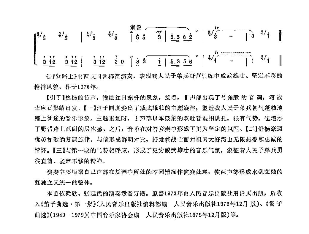 名称:竹笛二重奏简谱:野营路上 梁欣曲