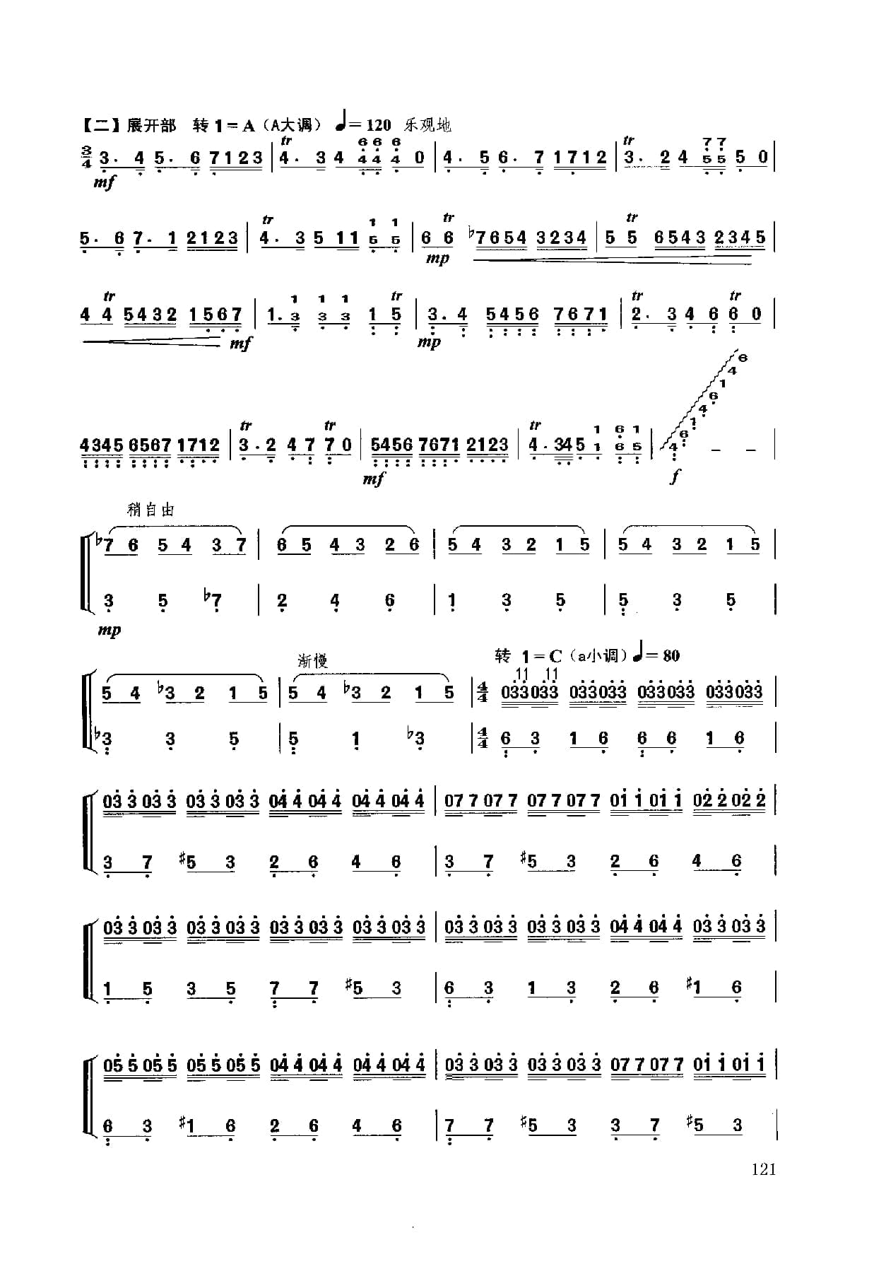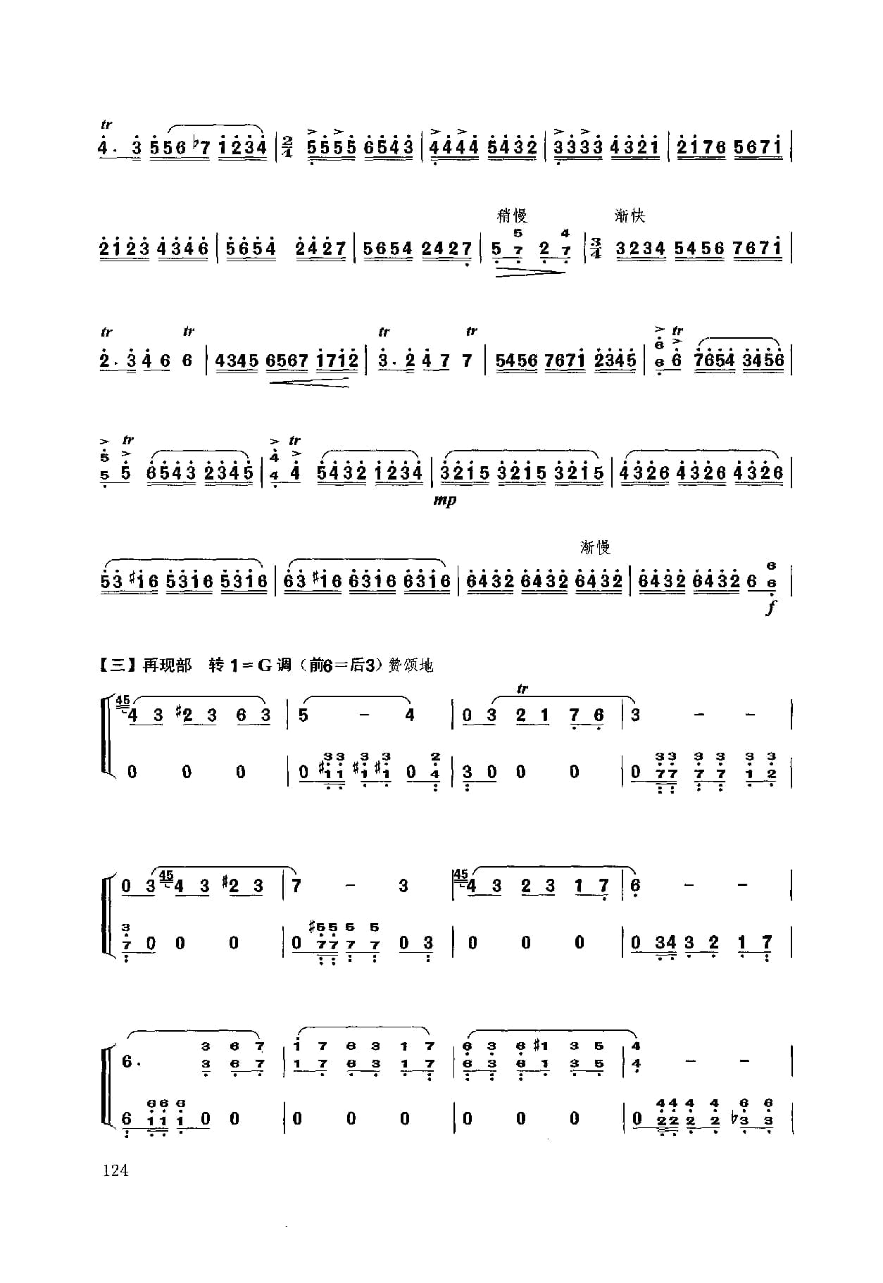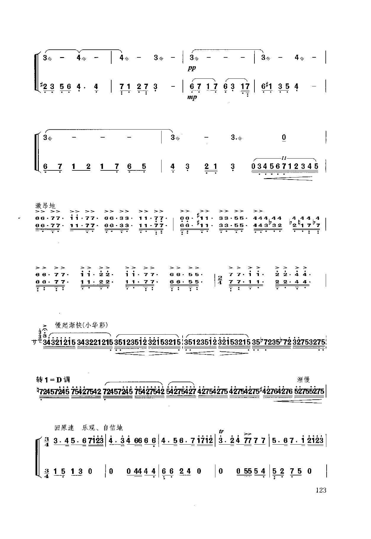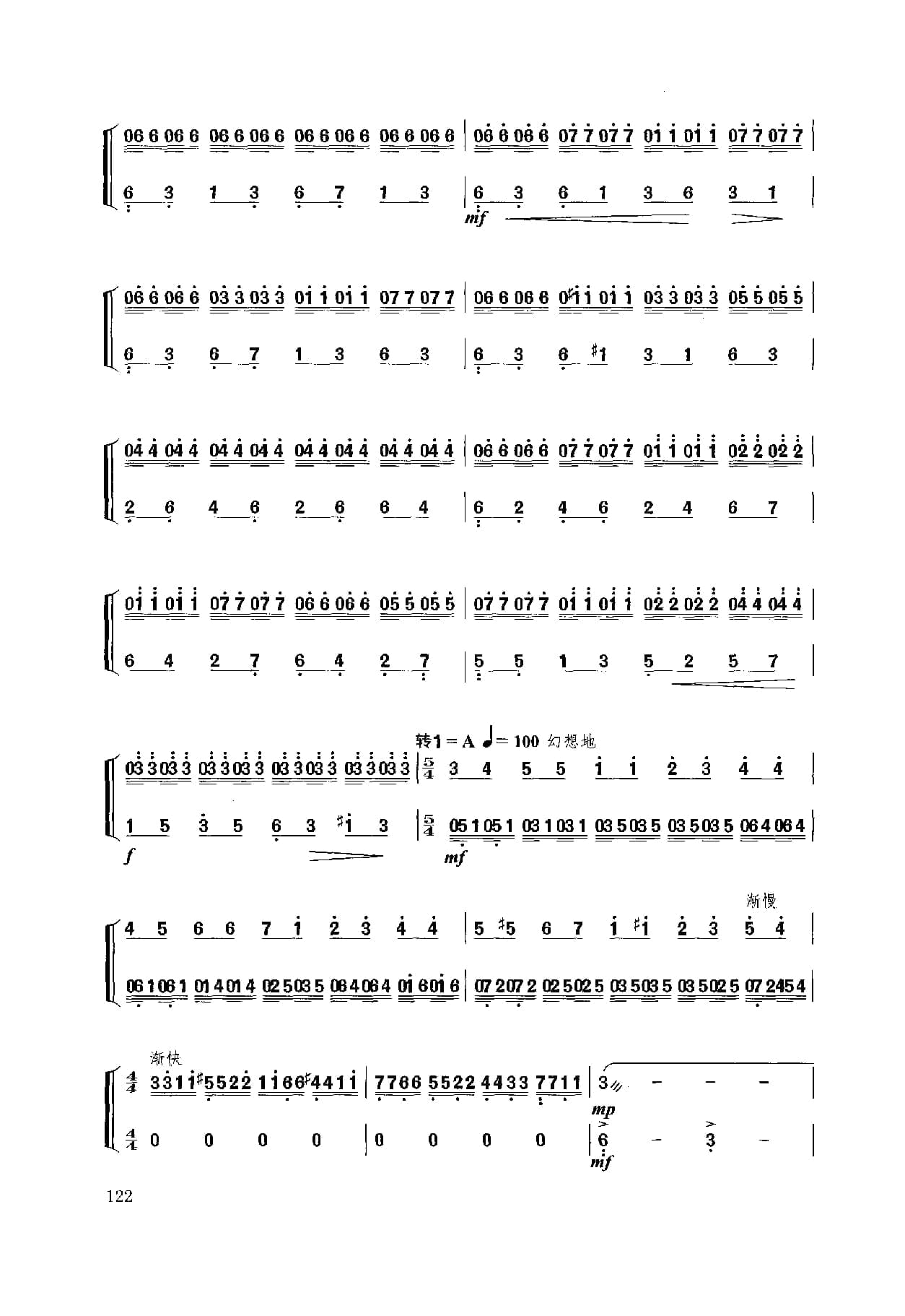名称:扬琴经典曲目简谱:b小调幻想曲 献给肖邦 许学东曲国家:中国分类:民族乐器谱子类:扬琴谱类型:简谱文件格式:jpg乐曲模拟肖邦的钢琴演奏手法,采用波一民间舞曲的音乐特性,形象中再现了流亡法国的这伟大爱国音乐家及钢琴家怀念祖国,向往自由光明的诗人情怀。乐曲为单乐章奏鸣曲式,主部主题的情绪由忧郁、悲伤、愤懑、激昂走向对祖国的赞颂。副部主题由向往光明、幻想自由、乐观自信到热情辉煌,宛如一首肖邦献给祖国的音乐赞关诗。