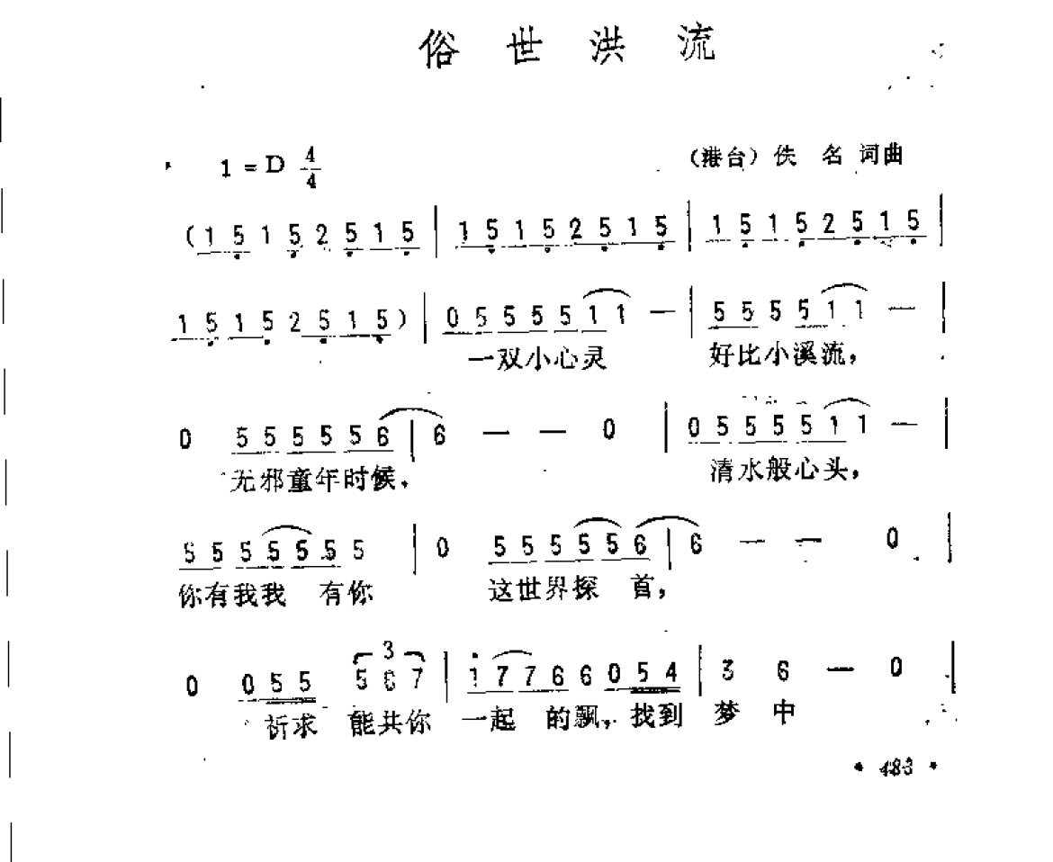 俗世洪流(港台)佚名词曲简谱歌词是曲谱查询网于2025年02月13日 14:39:41更新在曲谱投稿频道中的内容,收录在曲谱投稿栏目中;曲谱查询网分享的俗世洪流(港台)佚名词曲简谱五线谱高清图片,欢迎在线免费下载;曲谱查询网无需注册,即可直接下载海量歌曲谱与乐器学习相关资料。