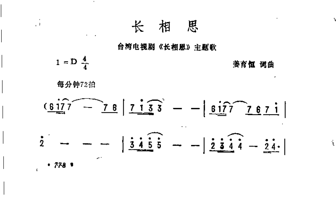 长相思(台湾电视剧《长相思》主题歌)姜育恒词曲简谱歌词是曲谱查询网于2025年02月14日 20:57:45更新在曲谱投稿频道中的内容,收录在曲谱投稿栏目中;曲谱查询网分享的长相思(台湾电视剧《长相思》主题歌)姜育恒词曲简谱五线谱高清图片,欢迎在线免费下载;曲谱查询网无需注册,即可直接下载海量歌曲谱与乐器学习相关资料。