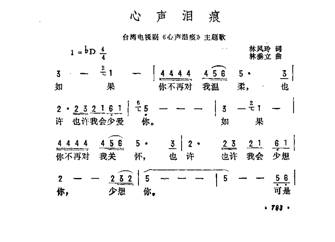 心声泪痕(台湾电视剧《心声泪痕》主题歌)林风玲词 林垂立曲
