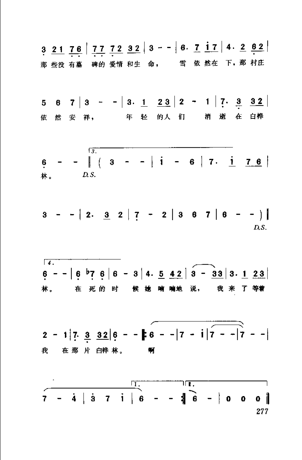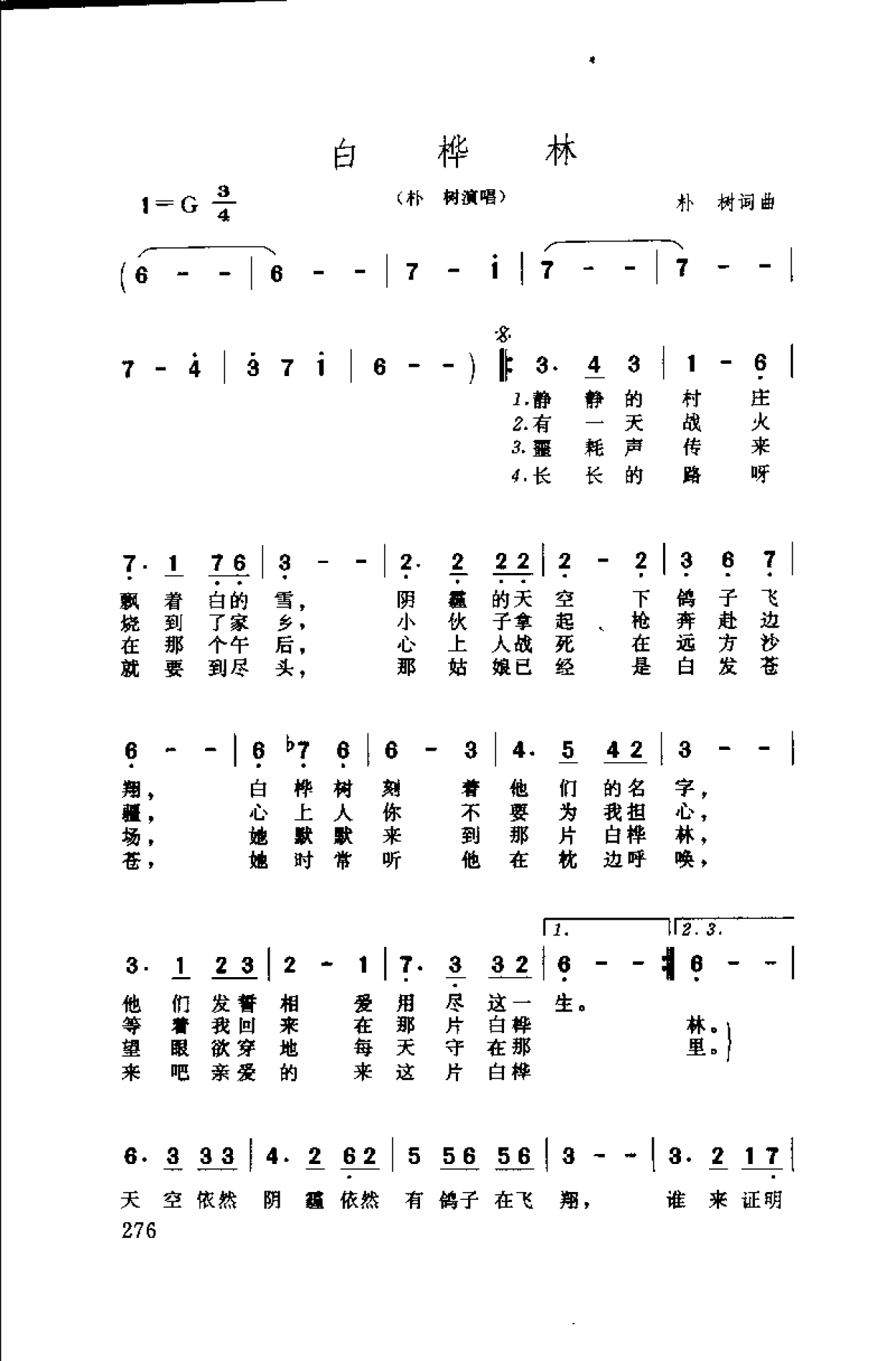 通俗歌曲简谱:白桦林·1999朴树词曲(朴树演唱)