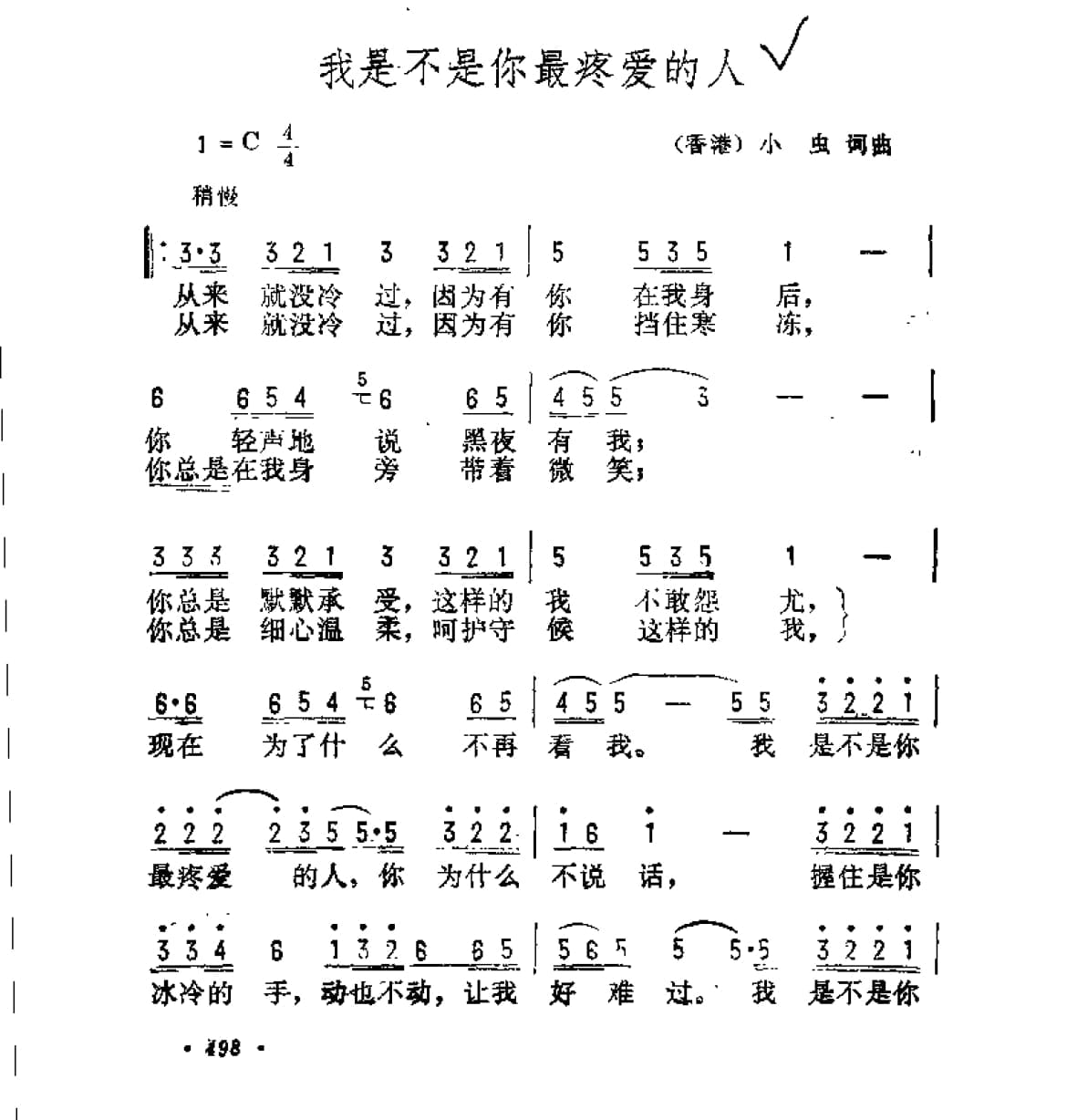 名称:通俗歌曲简谱:我是不是你最疼爱的人 香港 小虫词曲