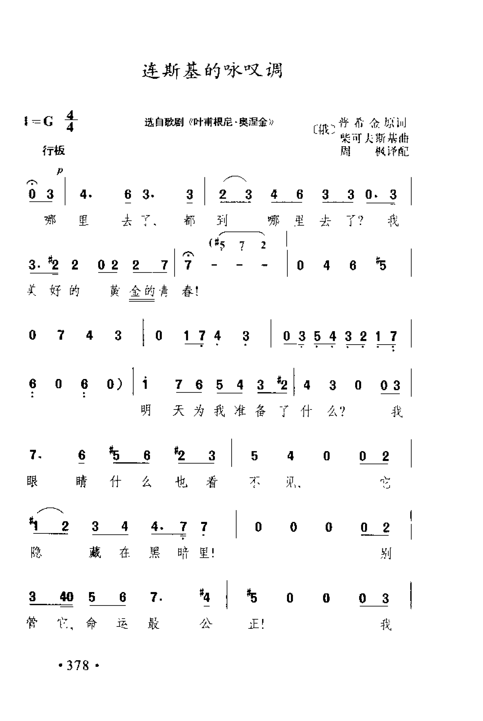 连斯基的咏驭调(选自歌剧《叶甫根尼·奥涅金》)(俄)柴可夫斯基曲 简谱歌曲集 外国名歌1000首
