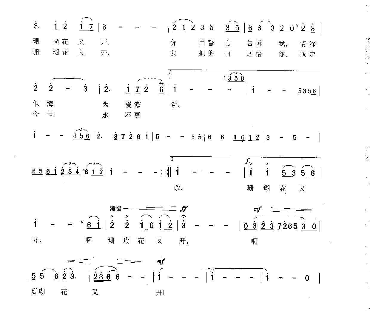 音乐剧简谱:珊瑚花又开——选自音乐舞蹈诗《沸腾的甲板》 樊孝斌词 胡小环曲