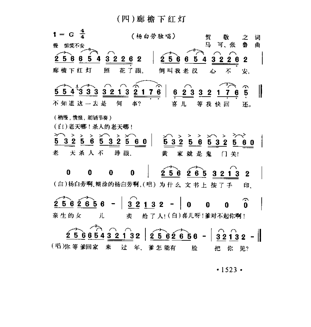 歌剧《白毛女》选曲(四)《廊檐下红灯》贺敬之词 马可 张鲁曲简谱歌词是曲谱查询网于2025年01月16日 14:48:32更新在歌剧谱频道中的内容,收录在歌剧谱栏目中;曲谱查询网分享的歌剧《白毛女》选曲(四)《廊檐下红灯》贺敬之词 马可 张鲁曲简谱五线谱高清图片,欢迎在线免费下载;曲谱查询网无需注册,即可直接下载海量歌曲谱与乐器学习相关资料。