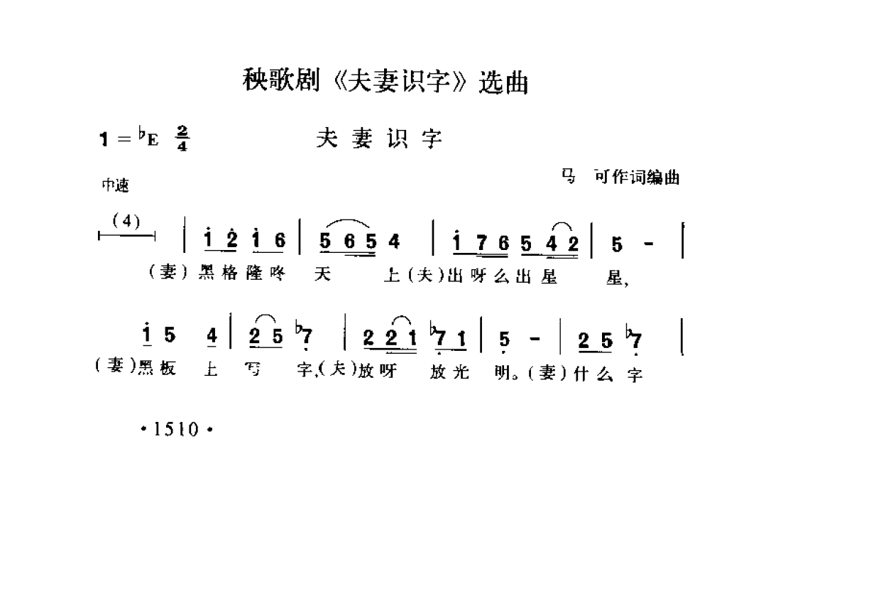 秧歌剧《夫妻识字》选曲《夫妻识字》马可作词编曲