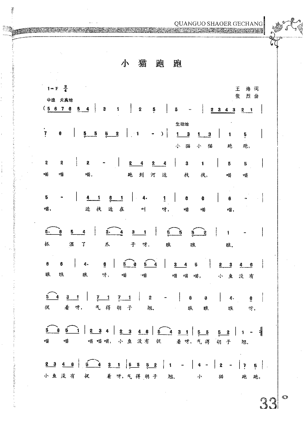 少儿歌唱考级简谱:小猫跑跑 王海词 张烈曲(三级)