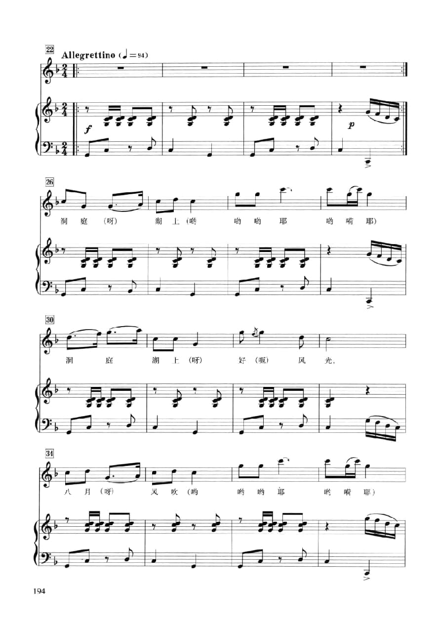 名称:声乐五线谱:洞庭鱼米乡 叶蔚林词 白诚仁曲国家:中国分类:声乐谱子类:通俗唱法歌谱类型:五线谱文件格式:jpg