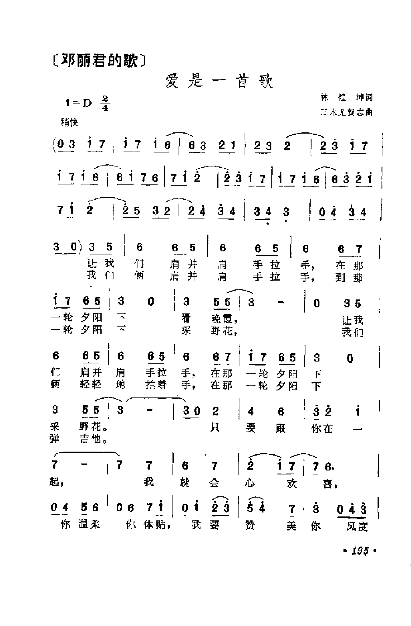 邓丽君歌曲谱:爱是一首歌