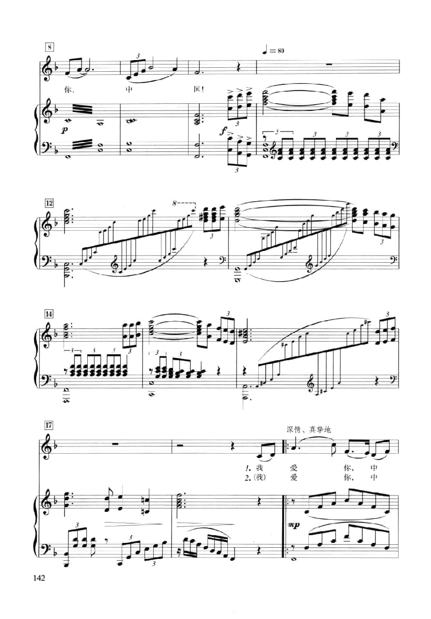 名称:声乐五线谱:我爱你,中国 电影 海外赤子 插曲 瞿琮词 郑秋枫曲国家:中国分类:声乐谱子类:民族唱法歌谱类型:五线谱文件格式:jpg声乐五线谱:我爱你,中国 电影《海外赤子》插曲 瞿琮词 郑秋枫曲