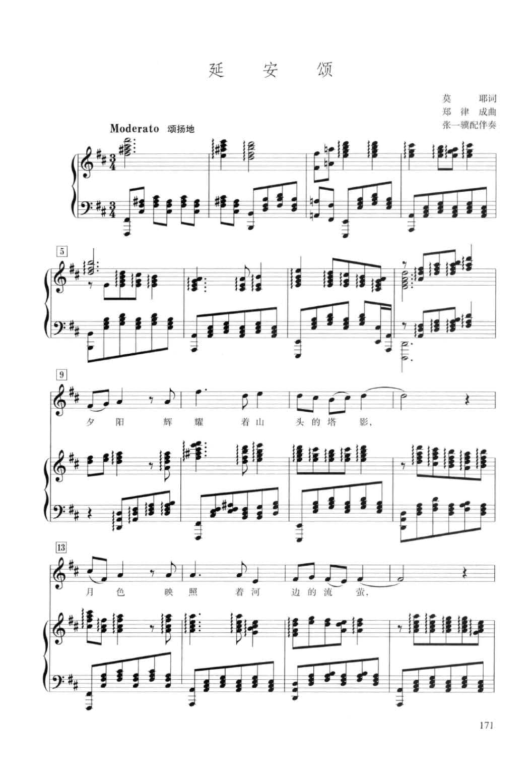 名称:声乐五线谱:延安颂 莫耶词 郑律成曲国家:中国分类:声乐谱子类:民族唱法歌谱类型:五线谱文件格式:jpg