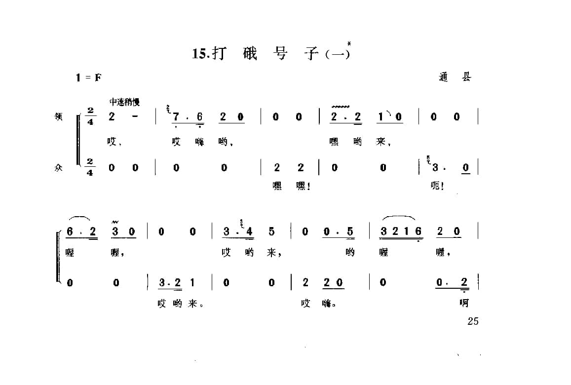 名称:劳动号子:打硪号子 一 通县 号子释文 北京民间歌曲简谱