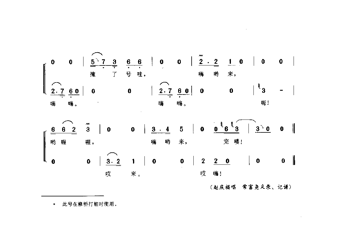 劳动号子:打硪号子(一) 通县(号子释文)北京民间歌曲简谱简谱歌词是曲谱查询网于2025年02月24日 17:27:35更新在原生态歌谱频道中的内容,收录在原生态歌谱栏目中;曲谱查询网分享的劳动号子:打硪号子(一) 通县(号子释文)北京民间歌曲简谱简谱五线谱高清图片,欢迎在线免费下载;曲谱查询网无需注册,即可直接下载海量歌曲谱与乐器学习相关资料。