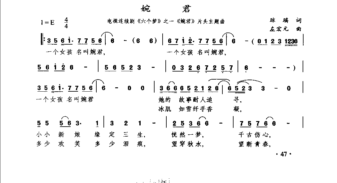婉君(电视连续剧《六个梦》之一《婉君》片头主题曲琼瑶词 左宏元曲)