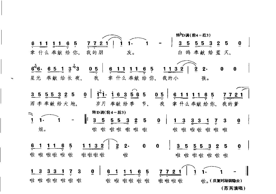 名称:奉献 杨立德词 翁孝良曲国家:中国分类:声乐谱子类:通俗唱法歌谱类型:简谱/五线谱文件格式:jpg