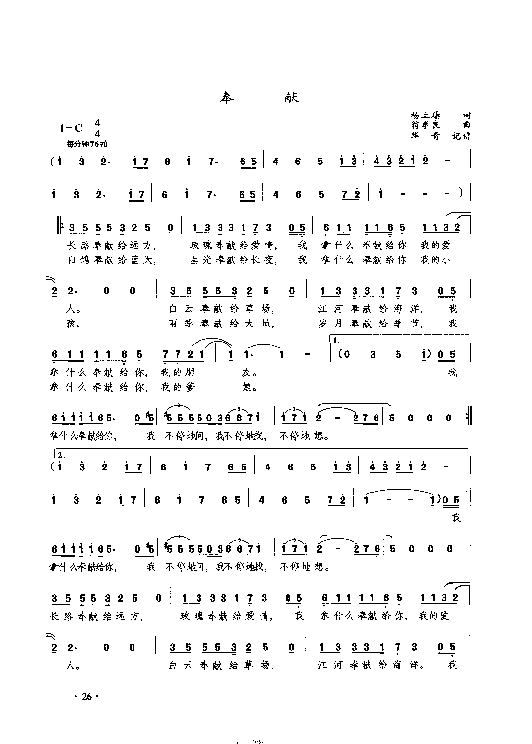 奉献(杨立德词 翁孝良曲)