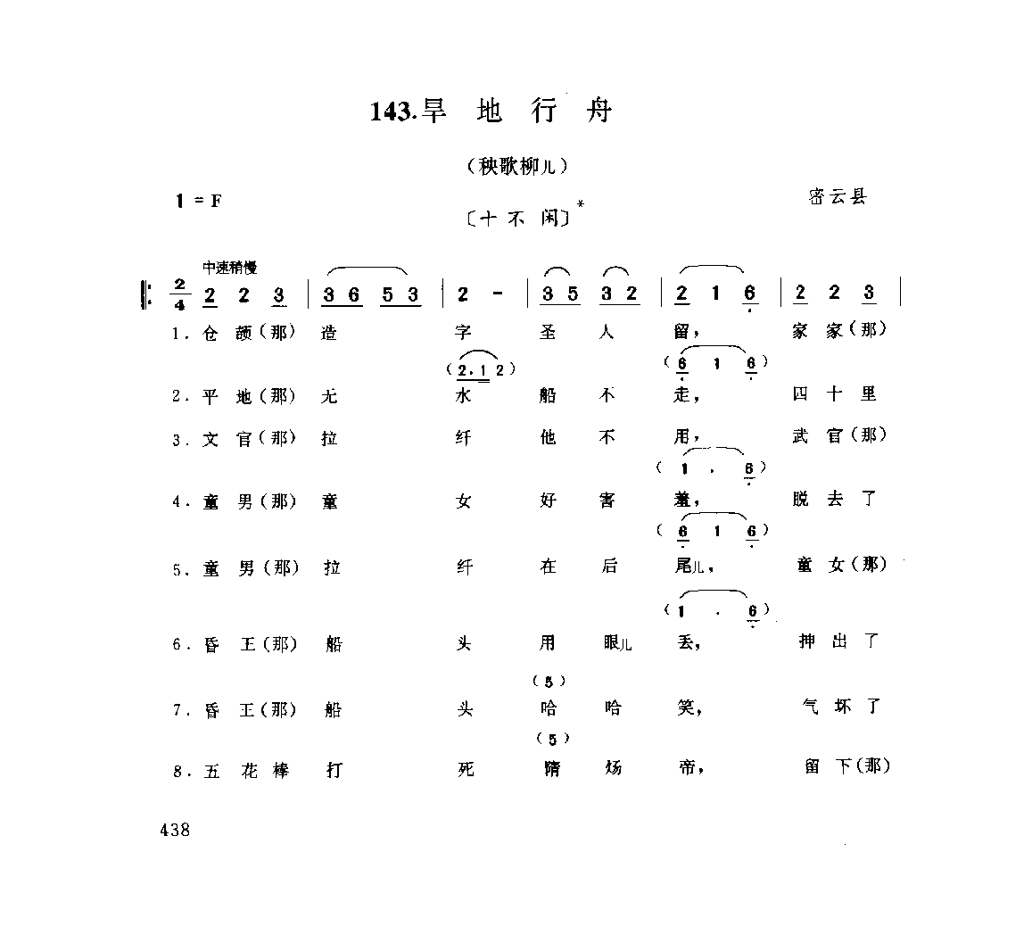 花会歌:旱地行舟 密云县(北京民间歌曲简谱)
