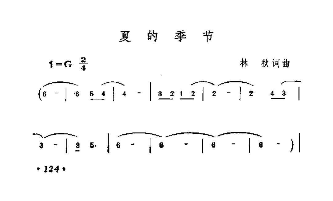 夏的季节 林秋词曲简谱歌词是曲谱查询网于2025年01月09日 09:42:02更新在通俗歌曲谱频道中的内容,收录在通俗歌曲谱栏目中;曲谱查询网分享的夏的季节 林秋词曲简谱五线谱高清图片,欢迎在线免费下载;曲谱查询网无需注册,即可直接下载海量歌曲谱与乐器学习相关资料。