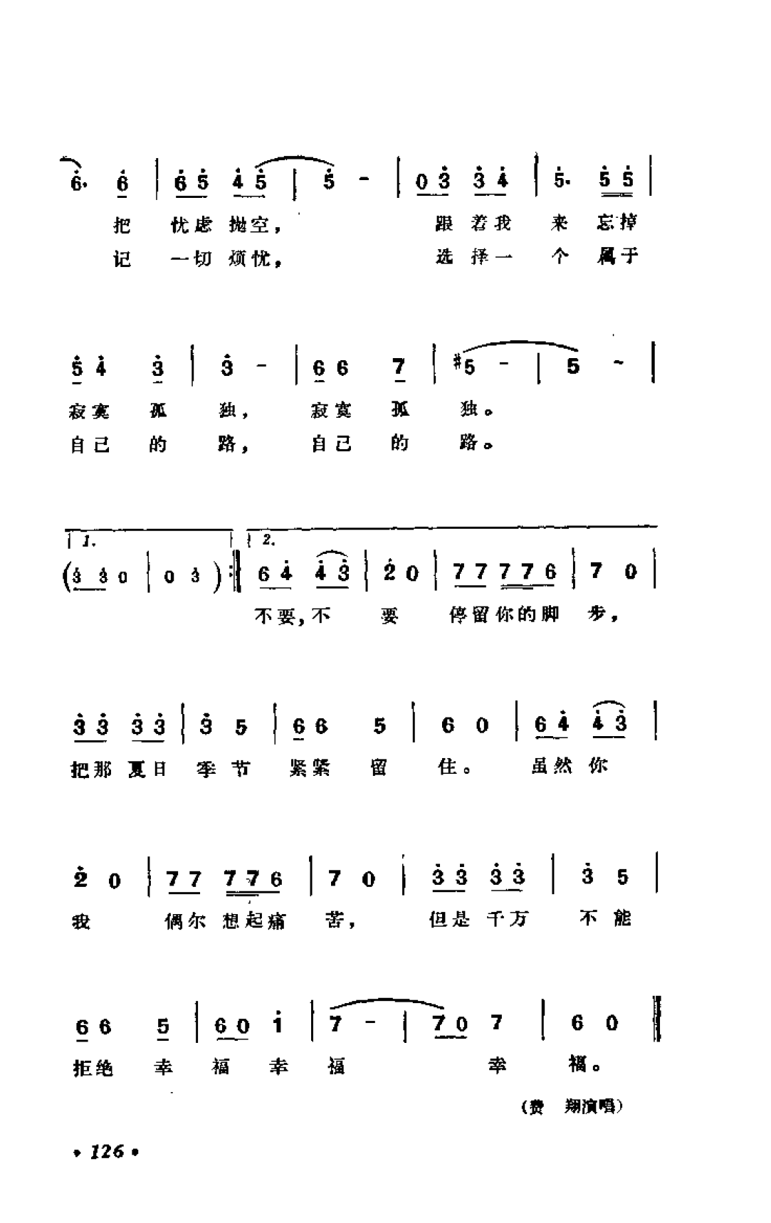1512 通俗唱法歌谱 展开你的笑脸 张厚存本篇为您分享通俗唱法曲谱 没有你陪伴真的好孤单,由桑爱 路勇 词/曲,梦然 演唱,大毛 编辑整理…《没有你陪伴真的好孤单》文本歌词没有你陪伴真的好孤单作词:桑爱作曲:路勇编曲:孙侠演唱:梦然歌词编辑:薰风习习吉他:喜波录音:梦然 混音:阿KEN伴唱:梦然 监制:陈伟制作人:陈伟出品人:赵小兵 林可忠...