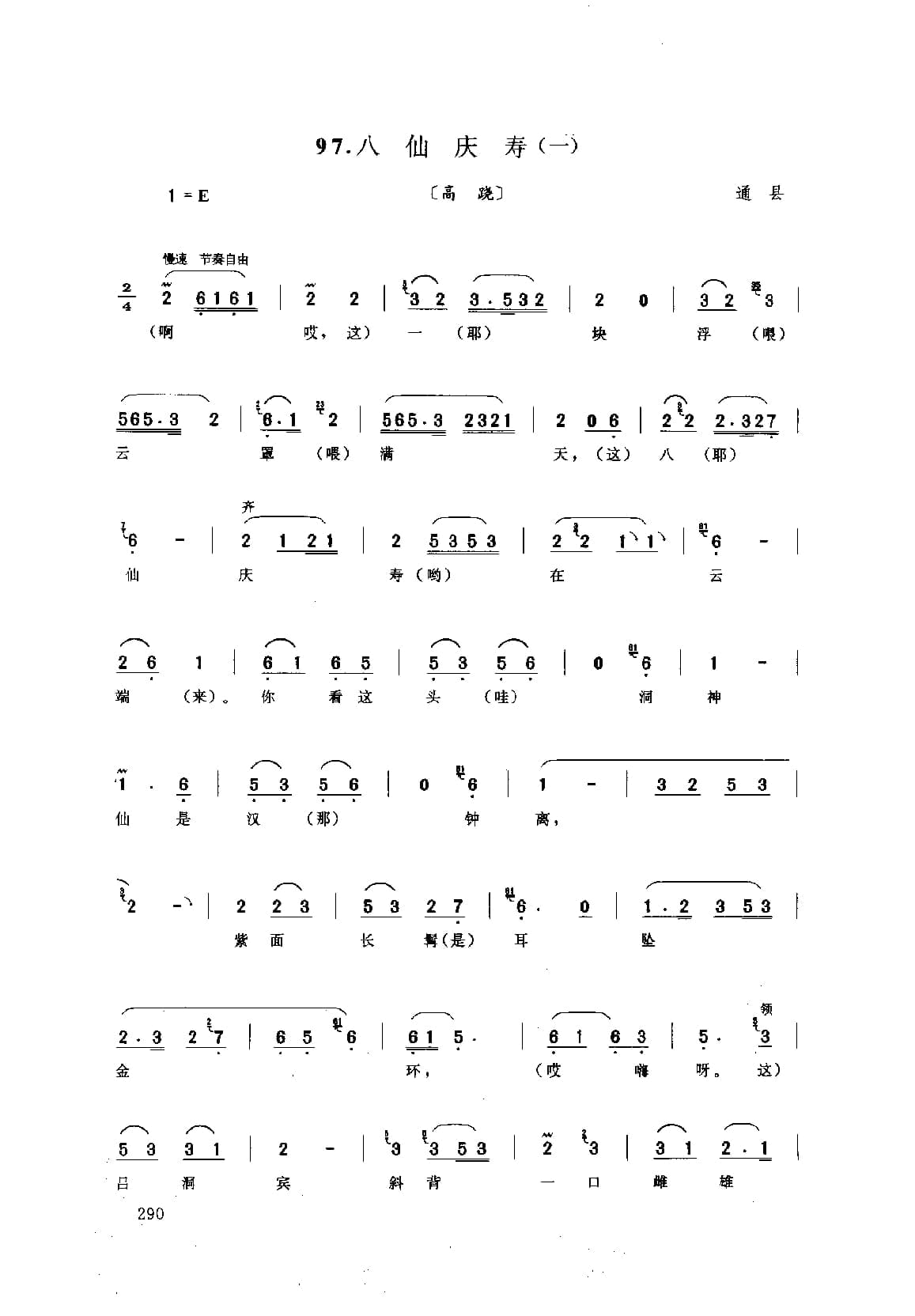 名称:花会歌:八仙庆寿 一 通县 北京民间歌曲简谱