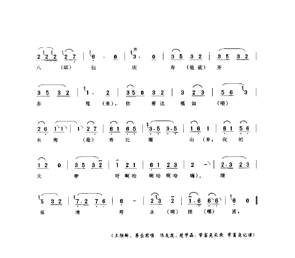 花会歌:八仙庆寿(一) 通县(北京民间歌曲简谱)